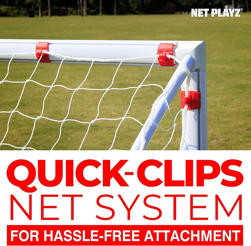 • Quick-Clips Net System (Patented) - An easy quick-clips net system makes the installation of the soccer goal simple, quick, and easy. Provides hassle-free attachment, allowing the net to attach to the poles easily like a curtain. The straightforward and time-saving net installation makes it a much better choice than the traditional one.