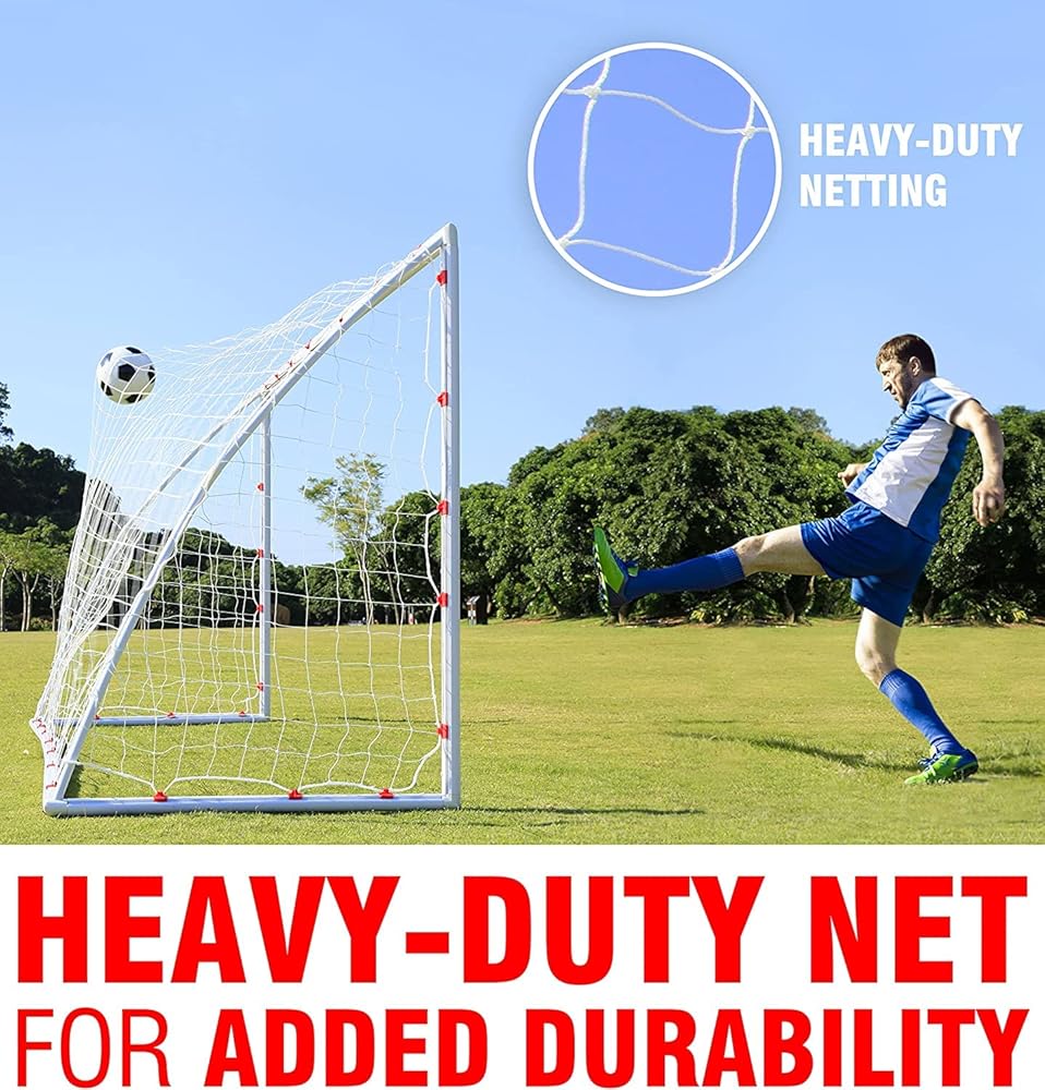• All-weather Net - Premium PE net features waterproof and weather-resistant. Protect the soccer goal from sun damage & rot. Make it able to be used in any weather condition. Together with the durable PVC frame, it can be left out all season.