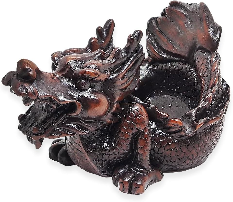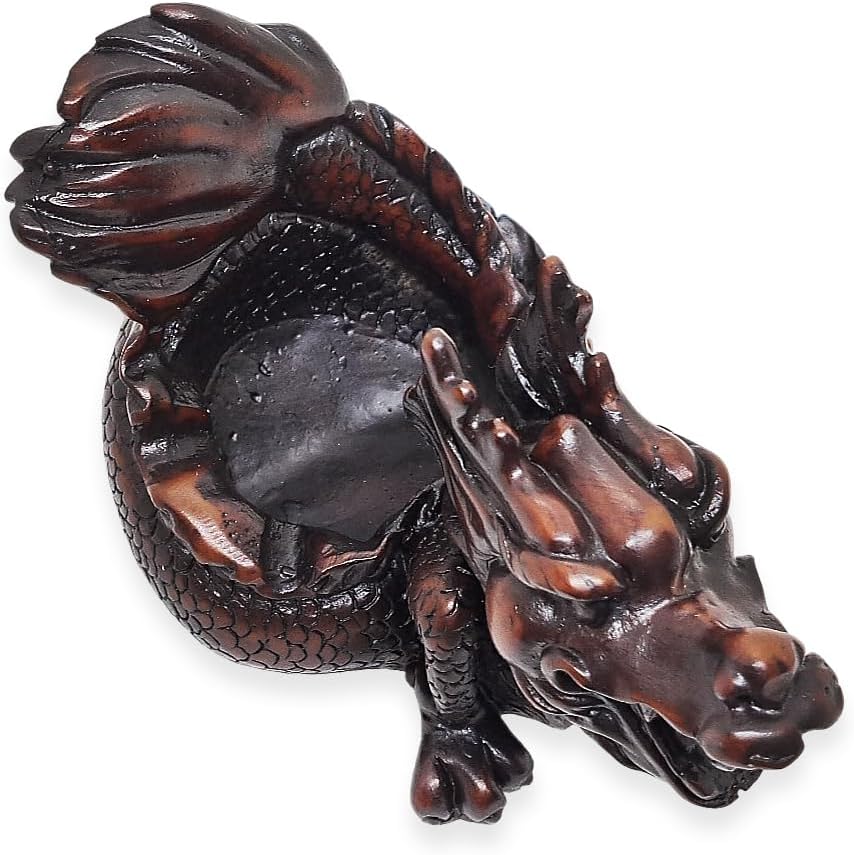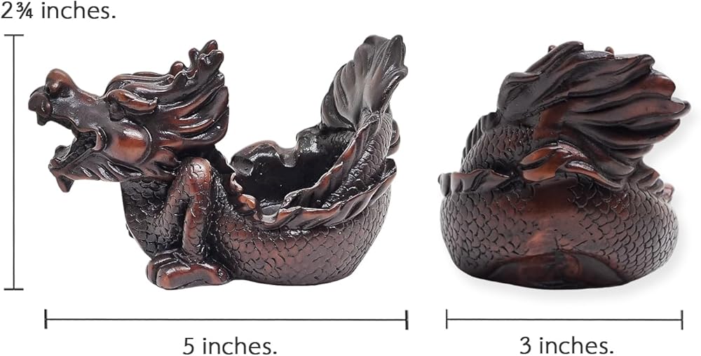 WitnyStore Tiny 5" Long Brown Chinese Dragon Asian Vintage Style Figurine Ash Tray - Miniature Hand Made Resin Ashtray Mythical Animals Decorative Figures Collectible Figurines Décor Souvenirs Gifts