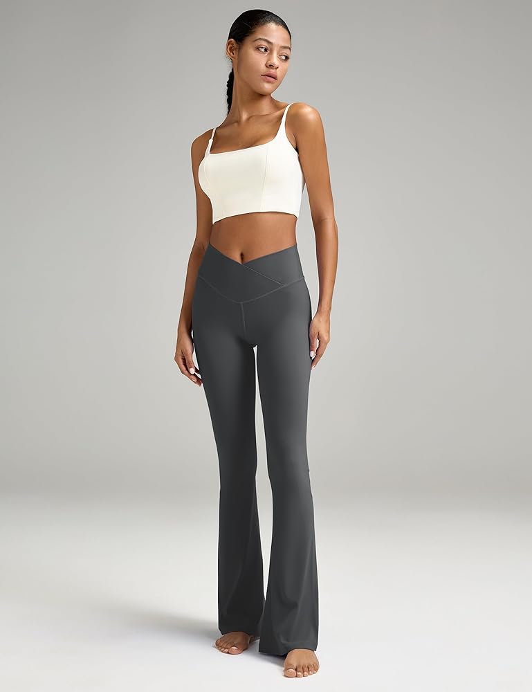 Tummy Control Yoga Pants: The V cross-waist bootcut leggings accentuate a slim waistline. The flare design from the mid-calf down sculpts legs, perfectly showcasing your curves!