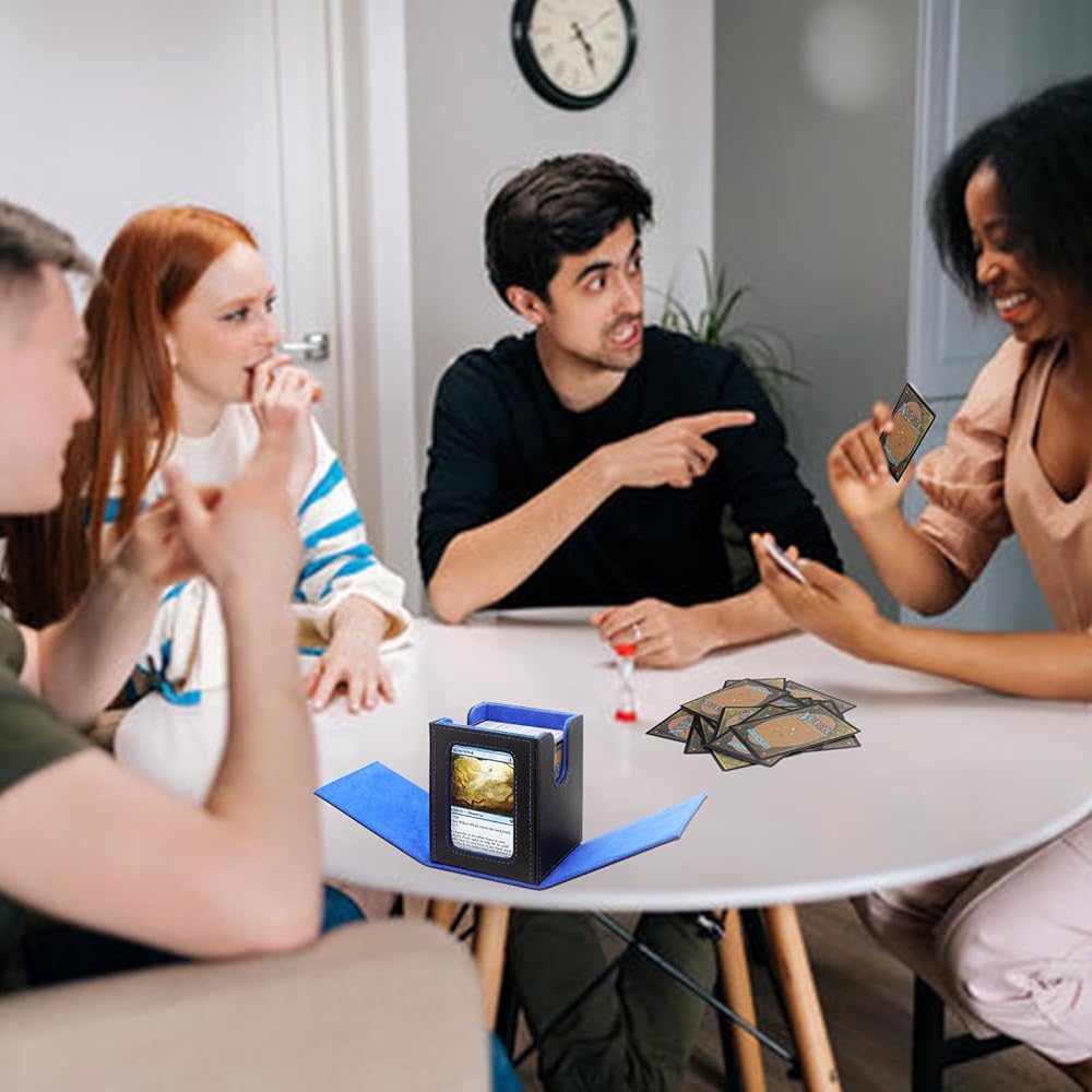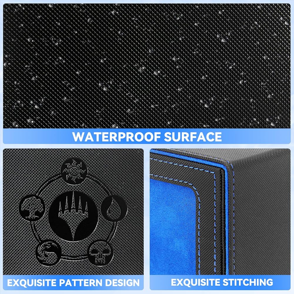 【PREMIUM QUALITY MATERIAL】The MTG commander deck has a rugged PU leather outer layer and a soft microfiber lining inner layer. Acid-free, non-PVC material that protects your cards even when you don't have time to wrap them, the card box keeps your precious cards intact.
