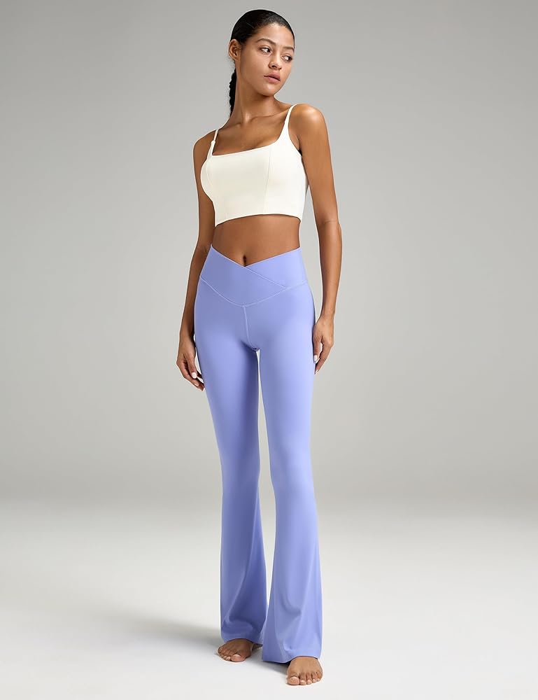 سراويل اليوغا للتحكم في البطن: يبرز اللباس الداخلي ذو الخصر المتقاطع على شكل حرف V محيط الخصر النحيف. التصميم المتوهج من منتصف الساق إلى الأسفل ينحت الساقين، ويظهر منحنياتك بشكل مثالي!