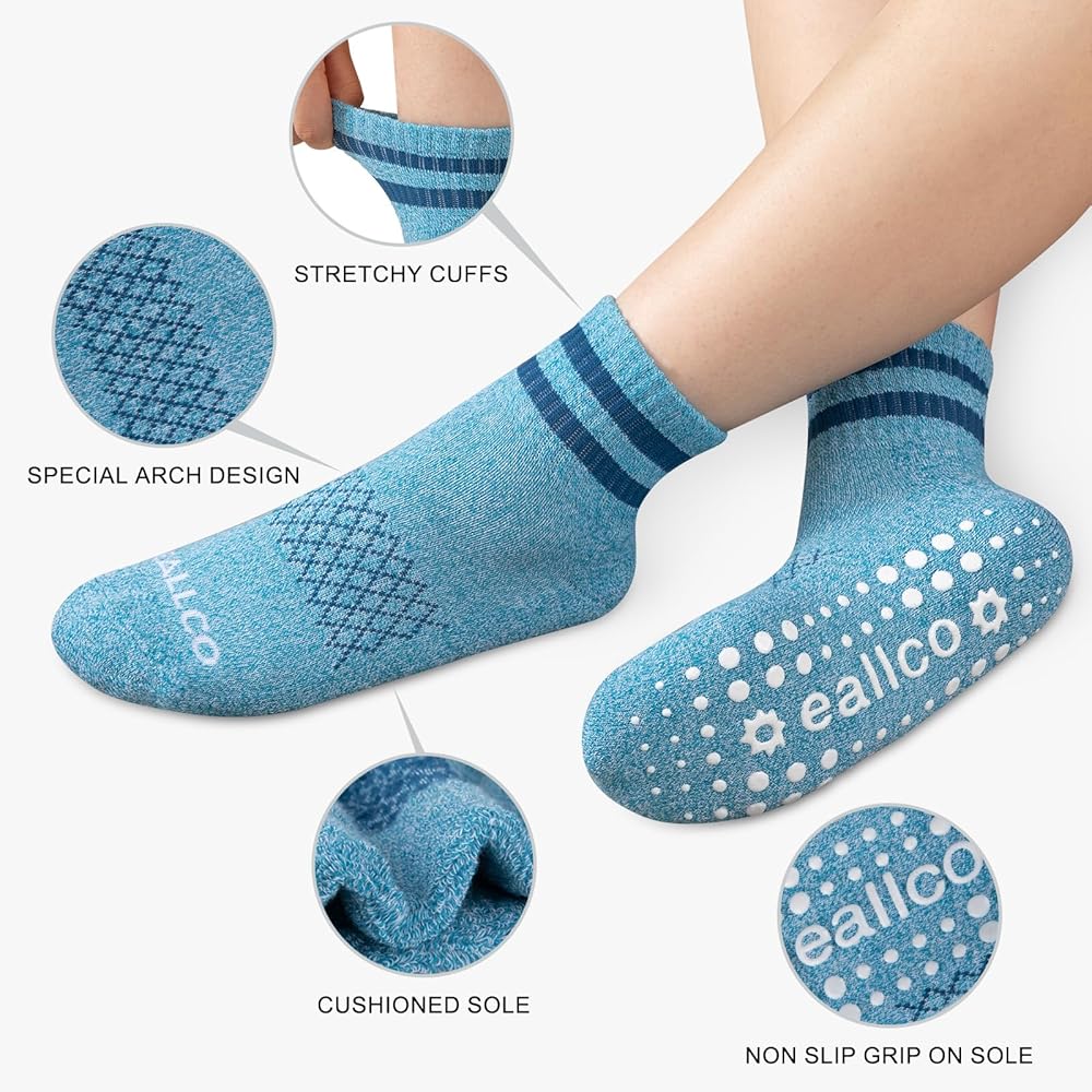 Multi-usage - These grippy socks for women are perfect for Yoga, Pilates, Bikram, Barre, Ballet, Trampoline, Travel, Studio, Gym, Dance and more. Also ideal for Hospital,Rehab, Physiotherapy, Elderly Care, Pregnancy and more to prevent falls from stairsor the floor