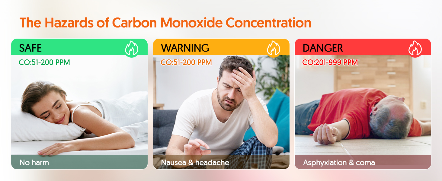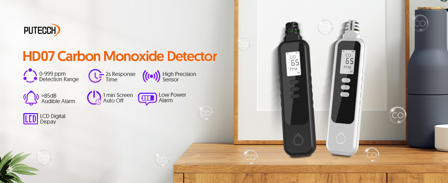 HIGH QUALITY CARBON MONOXIDE DETECTOR - The portable carbon monoxide detector is made of high-strength ABS material, which is sturdy and durable. High-precision electrochemical sensor can more quickly and accurately monitor the CO concentration in the surrounding environment.
