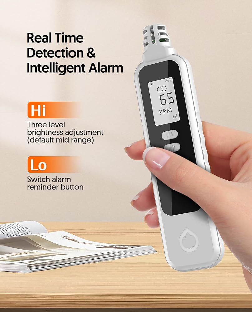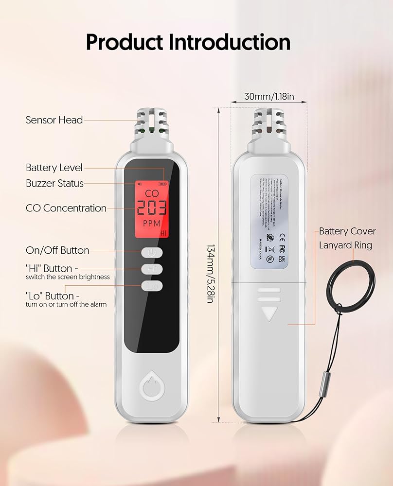 EASY TO USE - Travel carbon monoxide detector Install the battery, long press the power button to turn on the handheld CO monitor and wait 28 seconds to warm up. You can press the “Hi” button to adjust the screen brightness, and press the "Lo" button to turn on or turn off the alarm.