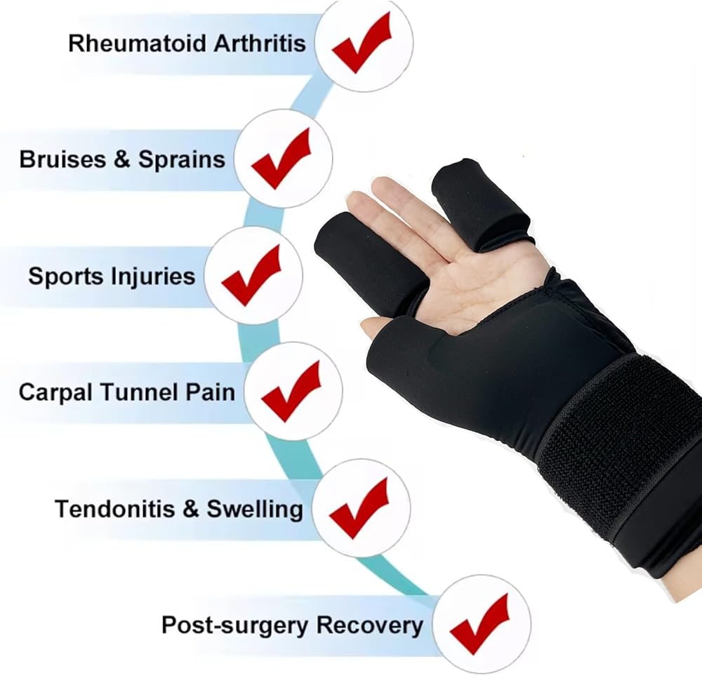 Super Soft, High Quality Soft Gel - Cold Flexible wrist ice pack provides 360° hand coverage for easy movement. Wrist opening design is more inclusive and elastic Velcro, better leave room for the wrist. In addition, there are two different sizes of finger ice packs, more comprehensive relaxation of finger joints.