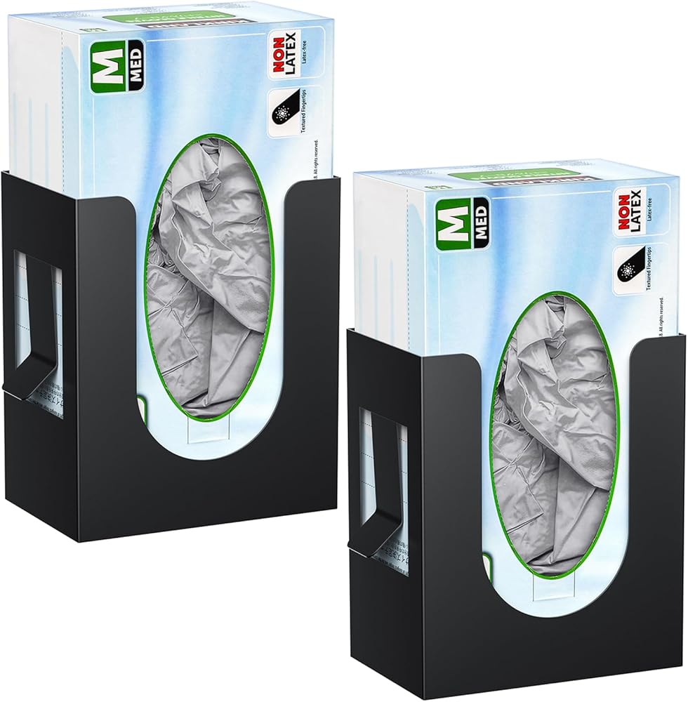 【Flexible Storage】The rubber glove holder measures 5.4" L x 3.43" W x 6.3" H, with a self-adjusting spring and a manual adjustment screw on the side, allowing it to accommodate boxes of various sizes to meet your usage needs. (Gloves Not Included)