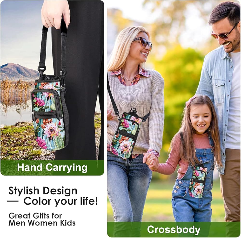 water bottle crossbody bags is easy to store, easy to clean, good for school,work,walking,running,hiking ,gym,cycling and many other outdoor sports. with two zipper pockets for smartphone,cash,card keys and other small items.with the adjustable shoulder strap and the carring strap, you can wear over the shoulder, cross chest as a sling bag or just hand carring.