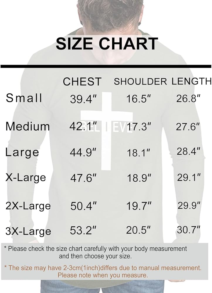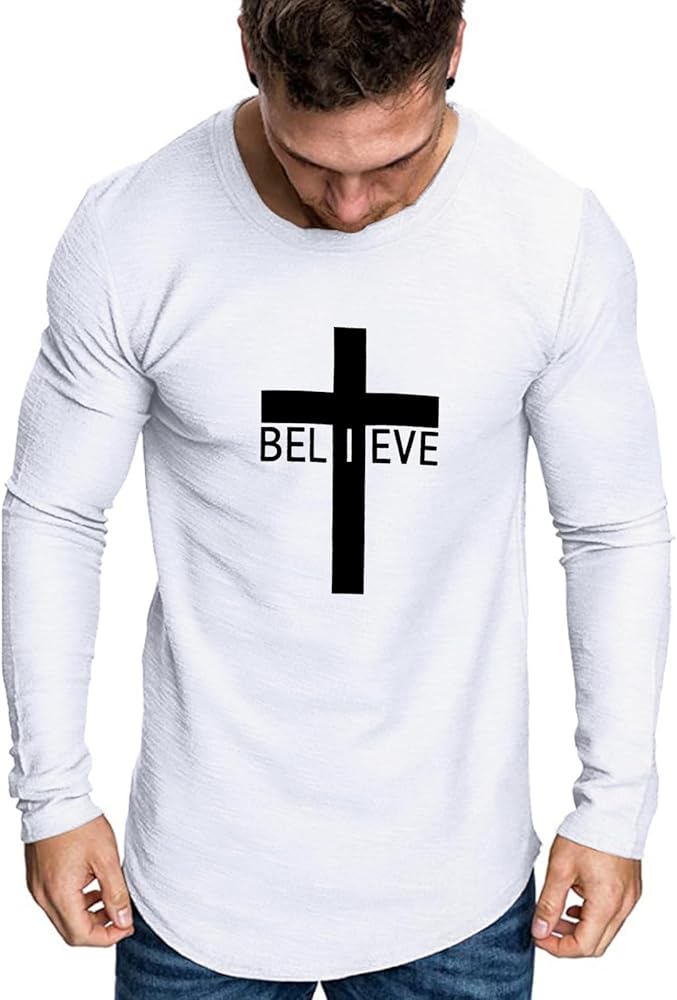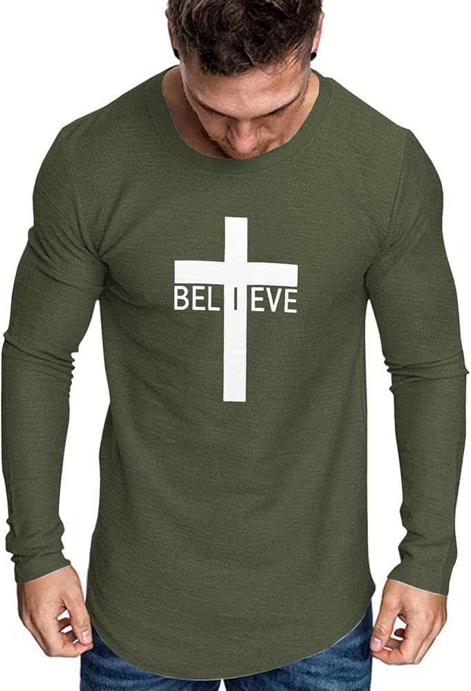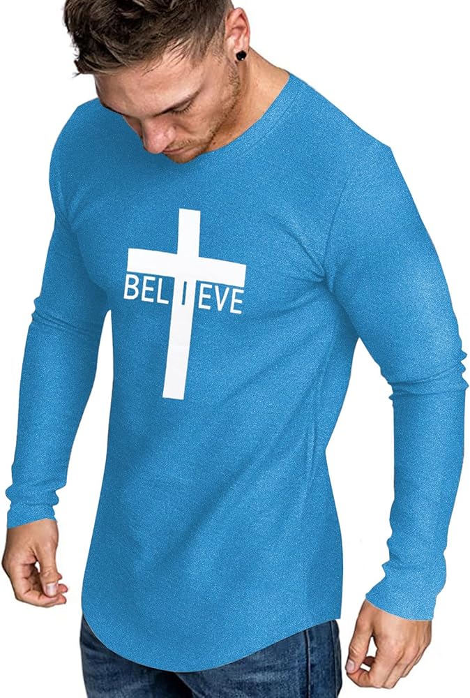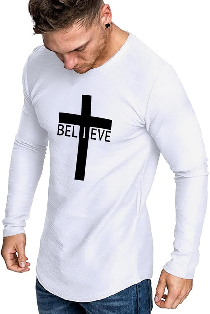 Design:Classic round neck/crew neck T-shirt,Long sleeve,slim fit,athletic fit.The cross and the word “BELIEVE” give it a Christian connotation.
