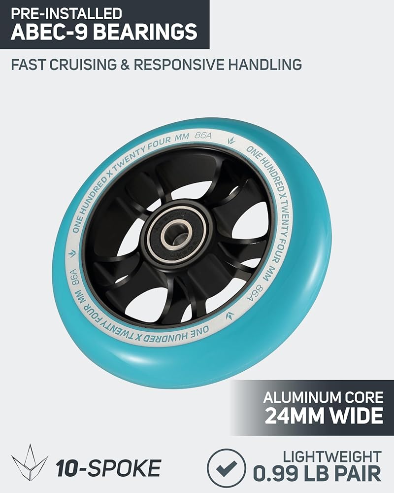 ENVY DESIGNED: Straight from the world-wide best selling pro scooter brand Envy Scooters, these are some of the best 100mm wheels out there. Envy wheels are trusted for being lightweight, making learning and performing tricks easier, all while maintaining the strength and stability that big lands and hard slams require