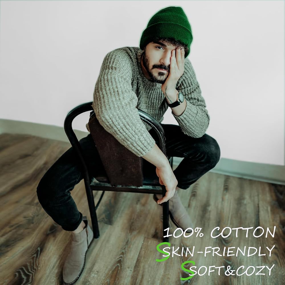 100% Cotton:Unlike synthetic fabric beanies,cotton beanie for men women made of 100% organic cotton;The material is natural and non-allergenic;Non-itchy,scalp friendly,double layer design,warm and unburdened,breathable,suitable for year-round use
