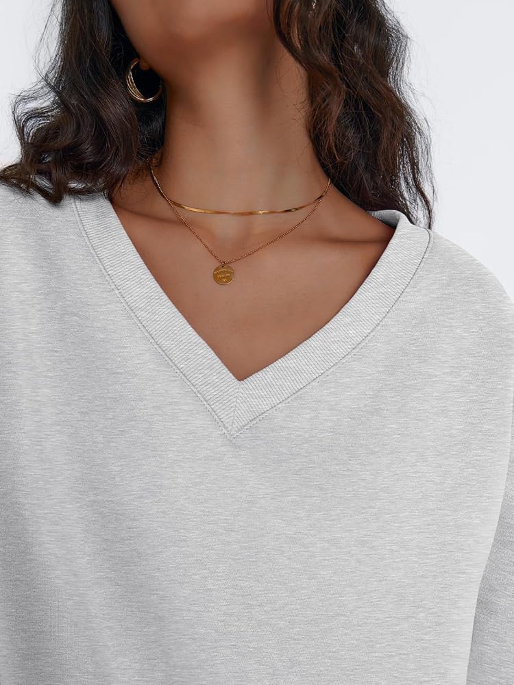 Features:Oversized,v neck, classic solid, fluffy long sleeves, suitable for any body type; womens fall fashion, winter clothes, gym clothes for women