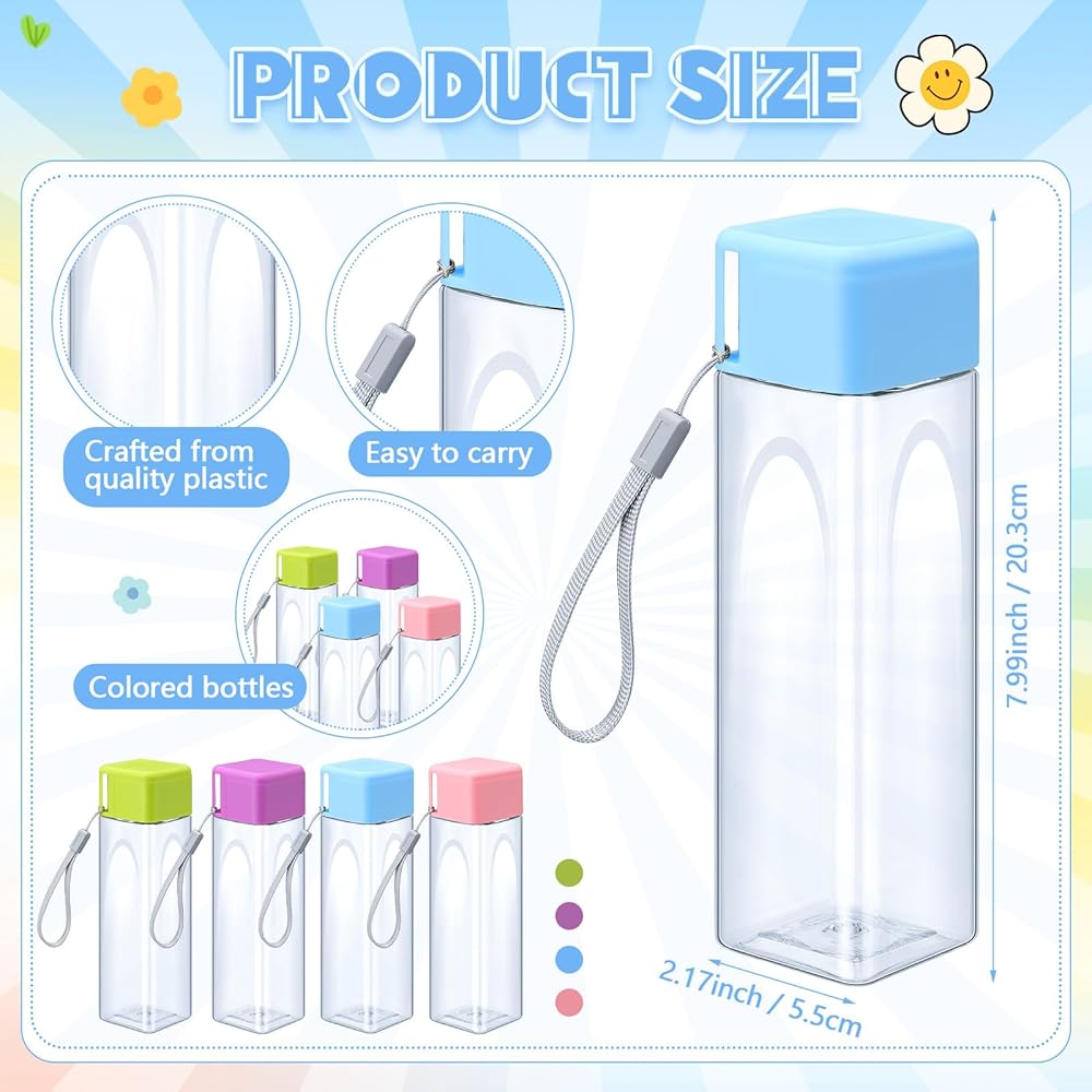 Our package comes with bulk sports water bottles in 4 attractive colors: pink, blue, green, and purple. This is especially nice for households with adults as each child can pick their favorite color. The colorful assortment also adds a fun and lively touch to your hydration routine.