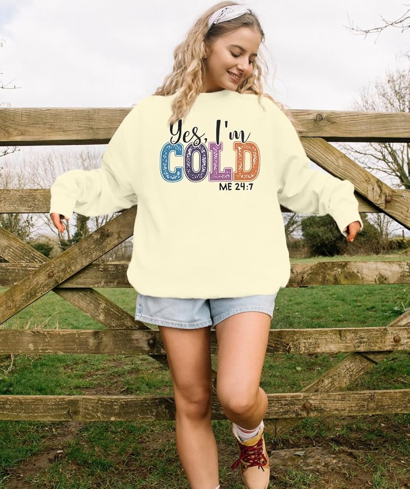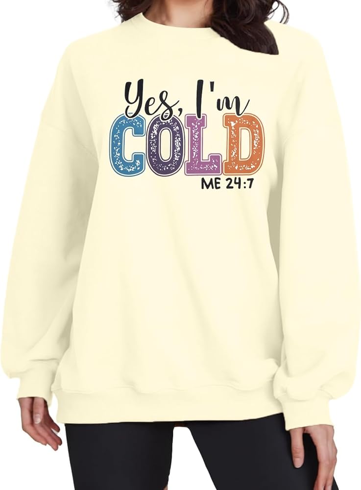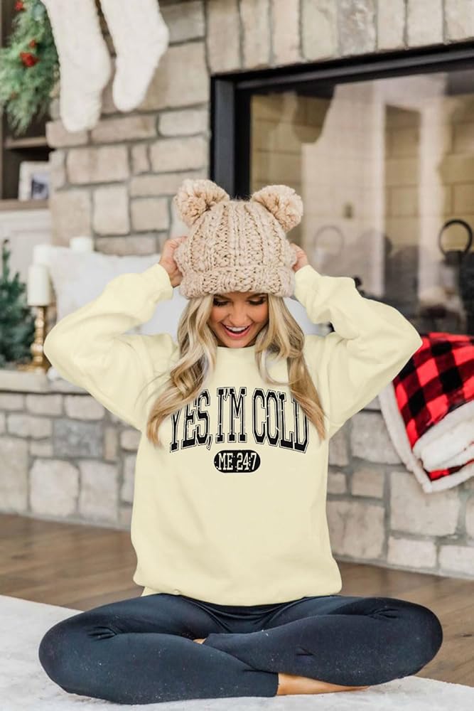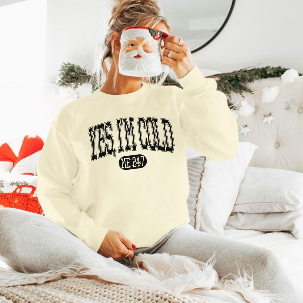 Funny Graphics: Featuring a bold, eye-catching "Yes, I'm Cold" graphic, fall pullover top adds a fun and approachable touch to your wardrobe.