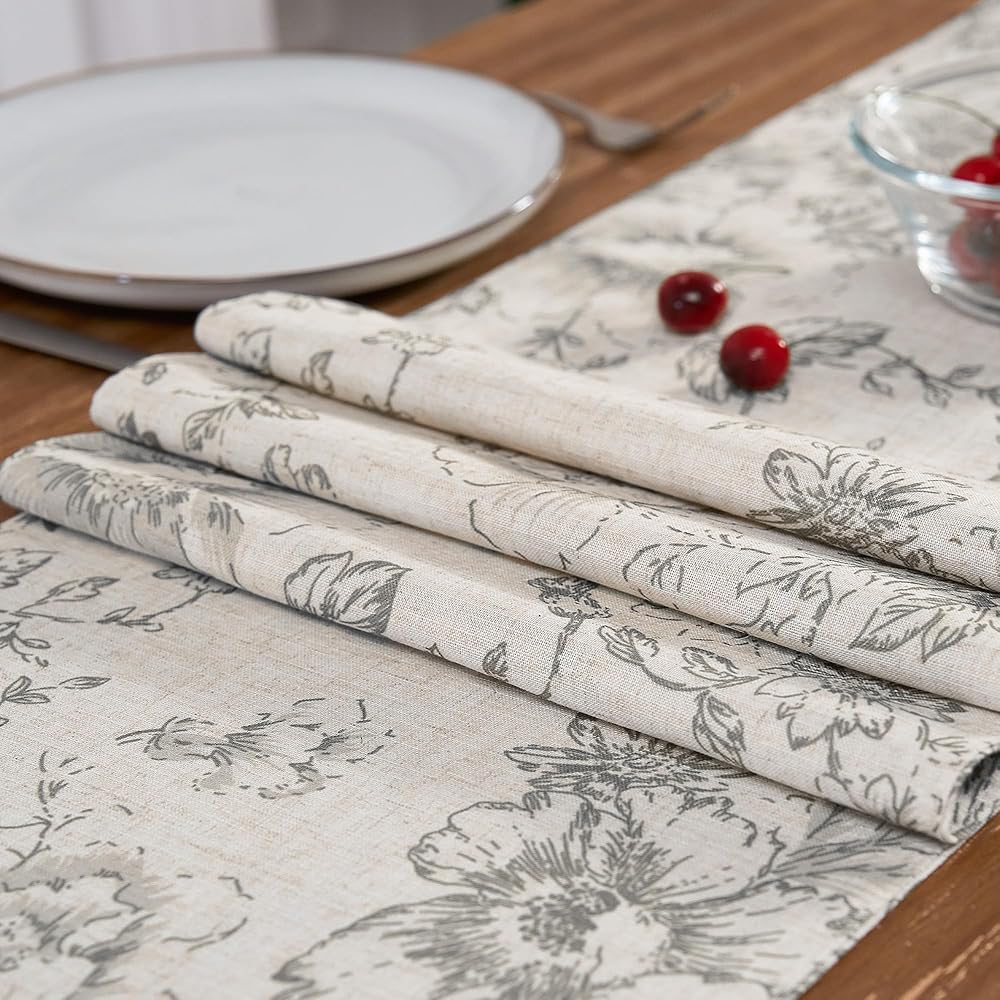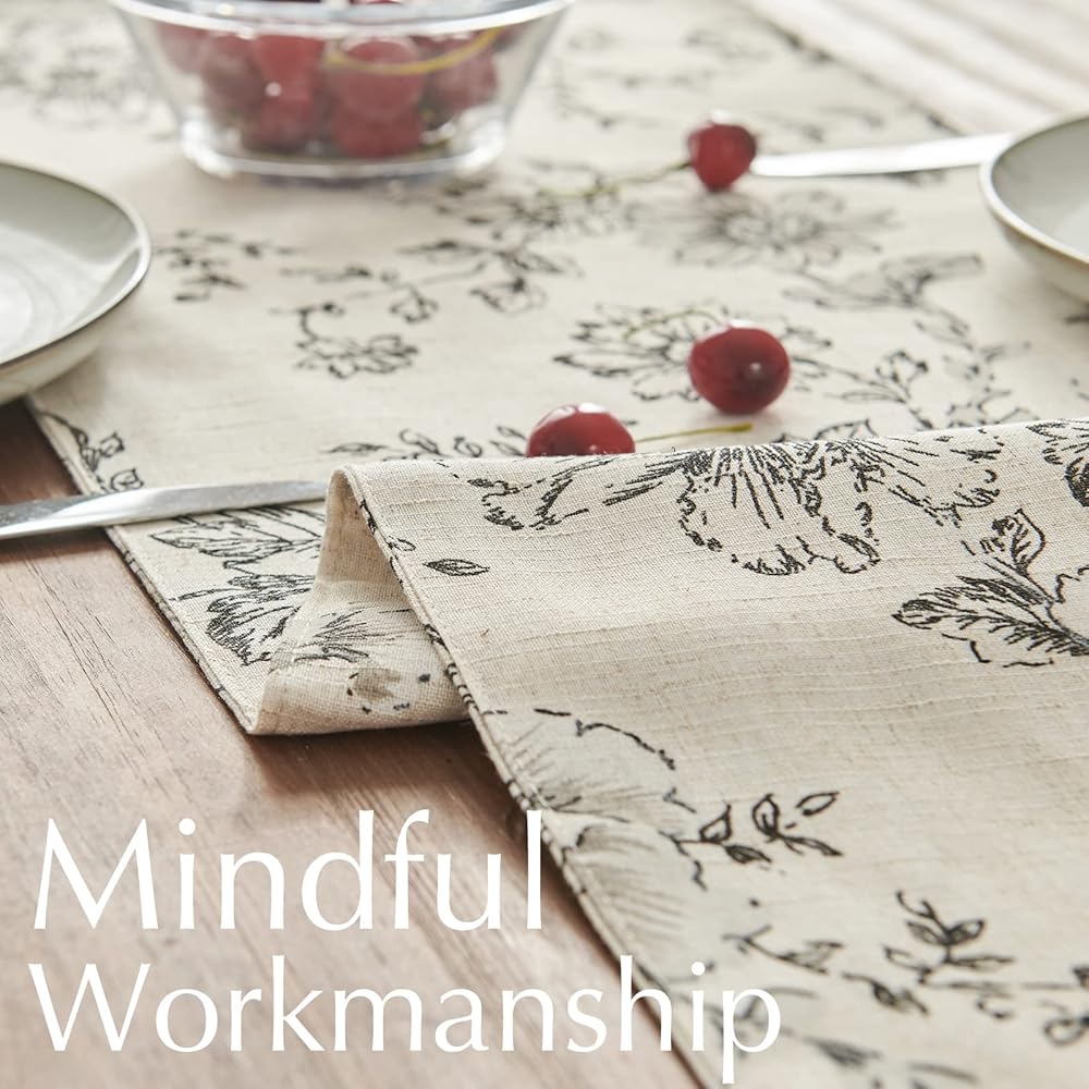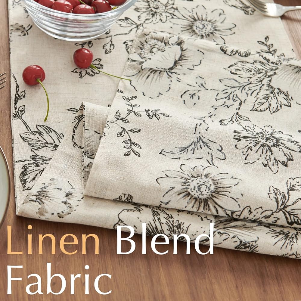 Quality Material: Crafted from premium beige flax fabric, this floral table runner offers a lightweight texture while maintaining easy care and durability.