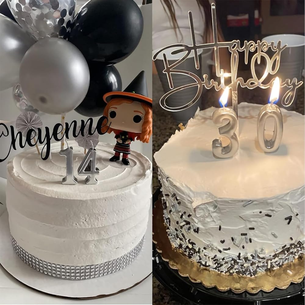 48th & 84th Birthday Candles, Silver Number 48 84 Candle for Cake, Happy Birthday Cake Topper Decoration for Birthday Anniversary Celebration Party Supplies