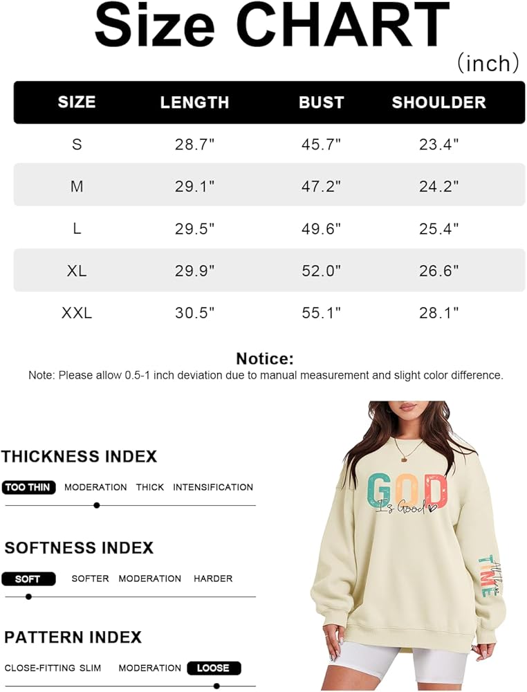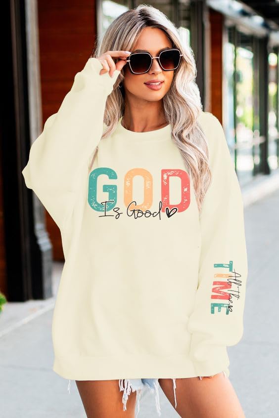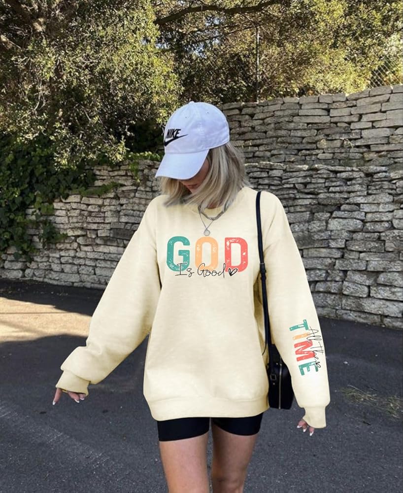 Features: Christian sweatshirts for women, womens oversized faith shirt, long sleeve jesus shirt, christian bible graphic hoodie, oversized religious t-shirt, God Is Good letter print, crew neck, casual and trendy.