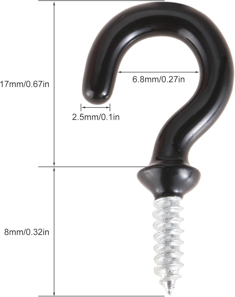 【Loading Weight】Screw in wall hooks can bear at least 50 pounds weight. 1 inch open mouth of the white ceiling hooks prevent items from sliding off.0.9inch screw can firmly bite into wall, wood and ceiling