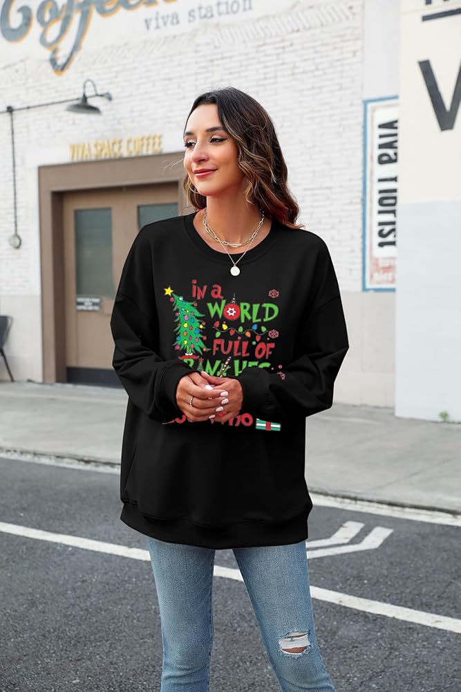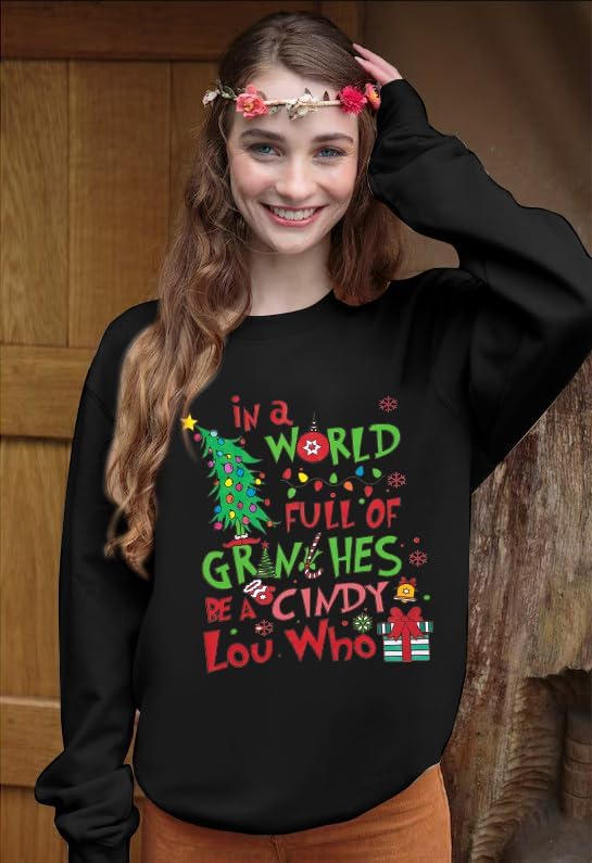 Package including:1* Be A Cindy Lou Who Christmas Sweatshirt Oversized Soft Cute Graphic Long Sleeve Tops