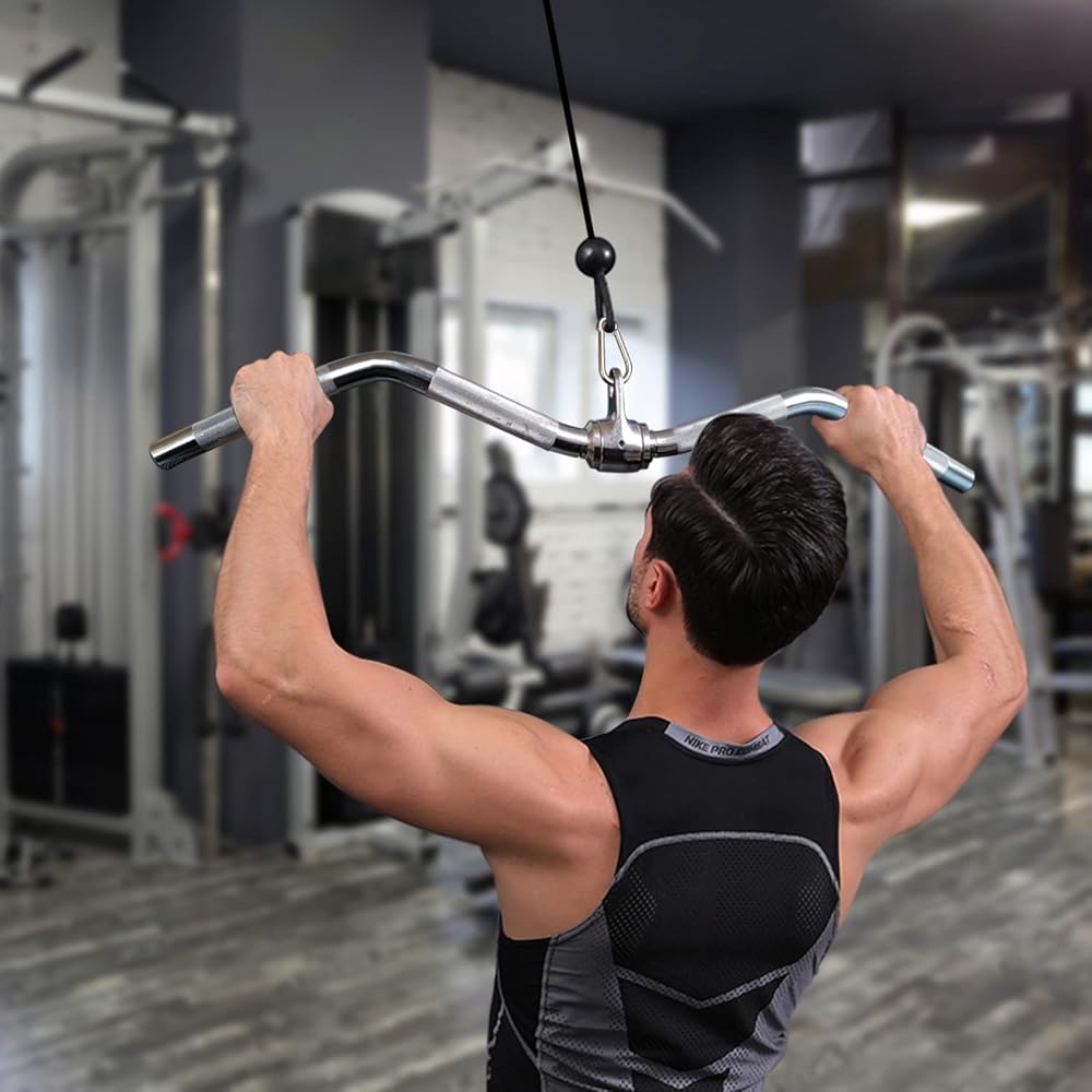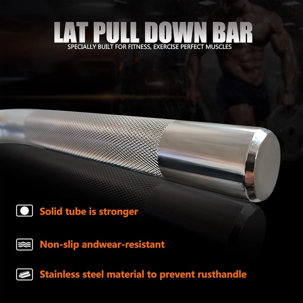 Lat Pulldown Attachments, Pro-grip Revolving Curl Bar Attachment with Non-Slip Handgrips, Lat Bar Attachment for Cable Machine, LAT Pull down Bar Home Gym Handles for Tricep Bicep Training