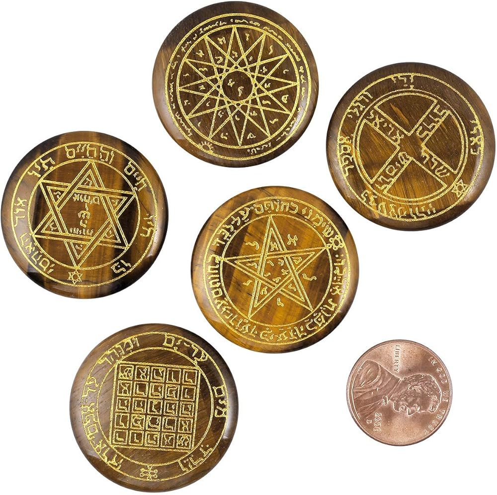 Healing Withes Stones: 5pc/pack, flat circular shape, polished and smooth, engraving solomon symbol for easy reference during holistic treatment. Its the favorite of beginer or reiki practitioners, you can as a gift for your family or your friends or just for youeself, you will receive the witches stone set of 5 and have the SUNYIK package bag of our brand.
