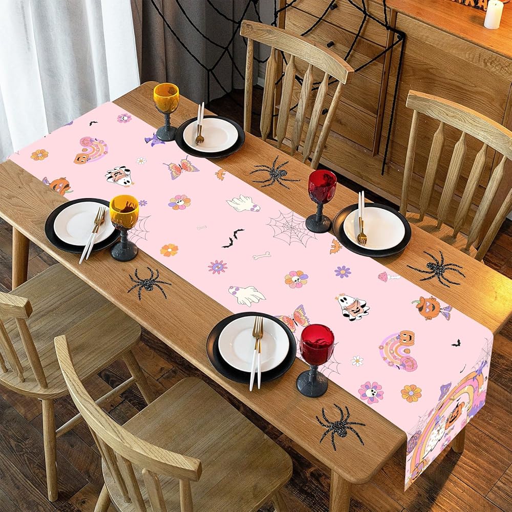 High-quality linen material: Our halloween groovy table runner is made of premium linen material, featuring natural linen texture and tactile sensation, which adds a touch of elegance to your dining table and provides soft cushioning for your tableware.