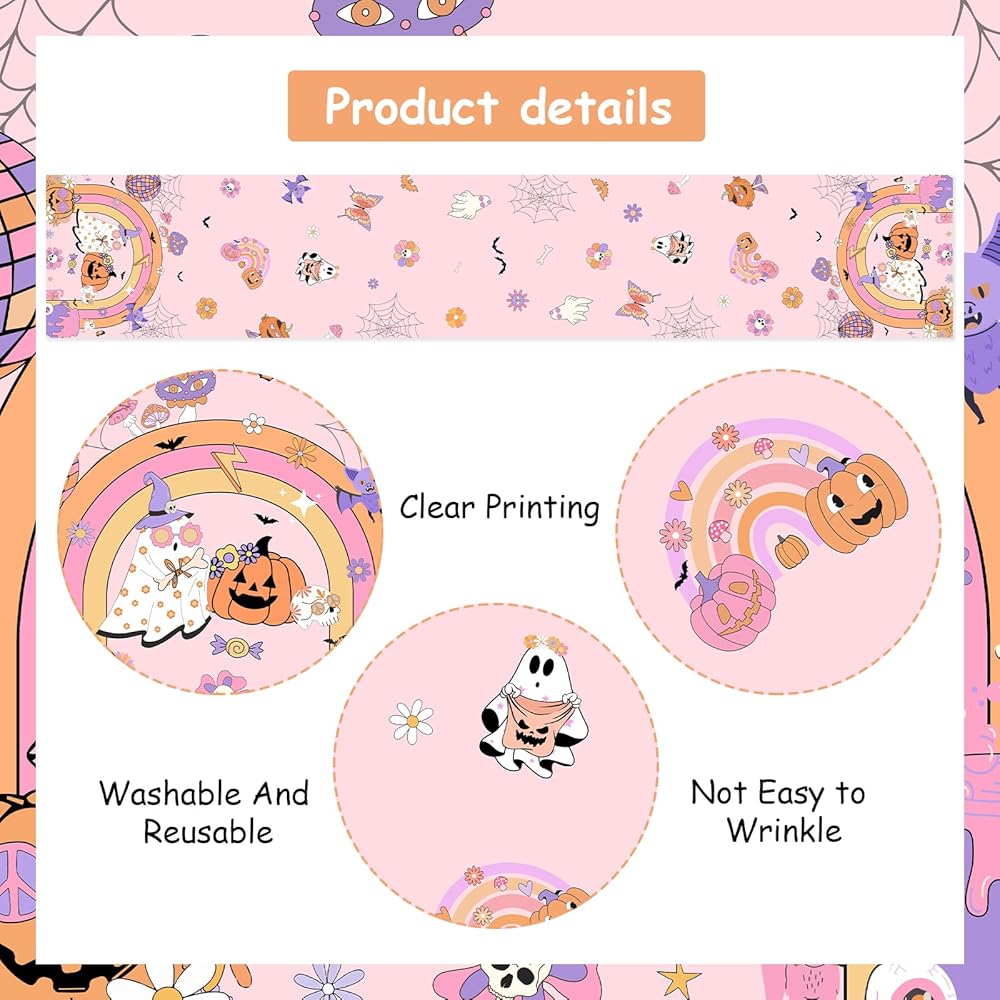 Convenient to use: Halloween groovy table runner protects your table surface from hot pans, scratches and spills. Add beauty to your coffee table, dining table, living room table, study table and desk.