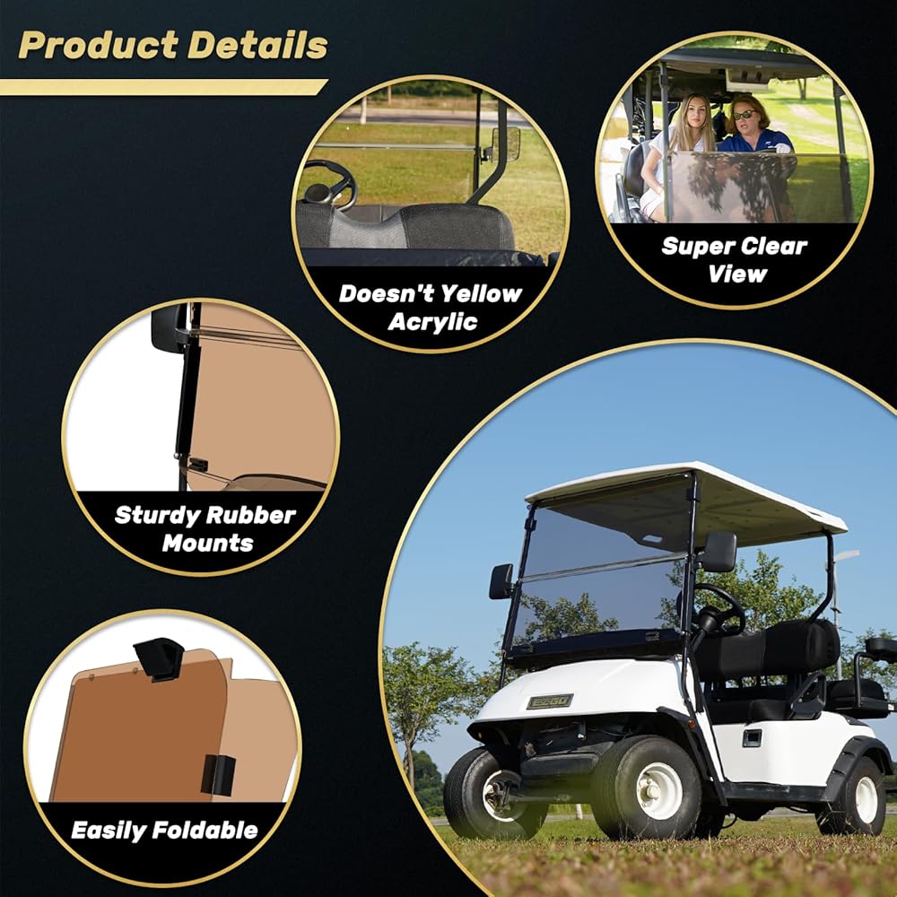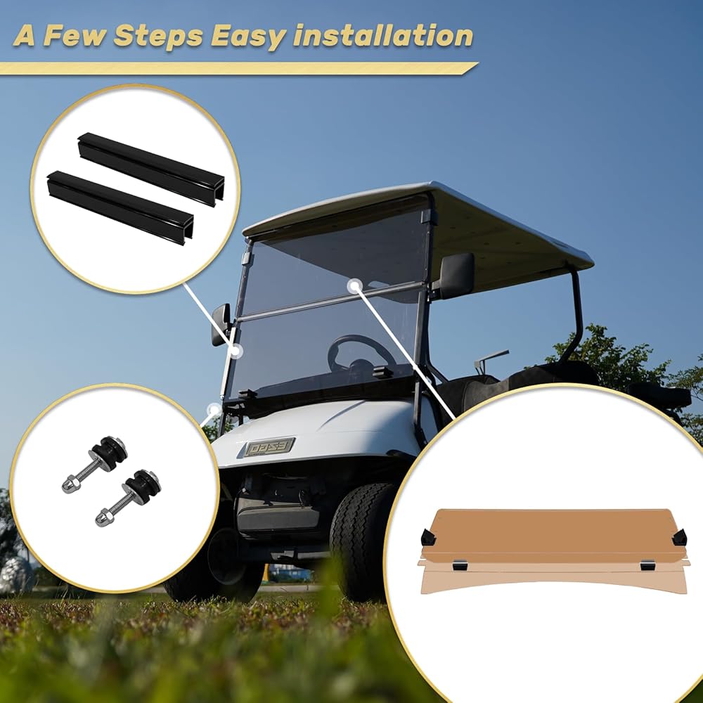 【Sturdy & Durable】Our ez golf cart windshield was made of 4mm thick high-density PC material, high impact & crack-resistant, long lasting, Anti-UV, and easy to be cleaned
