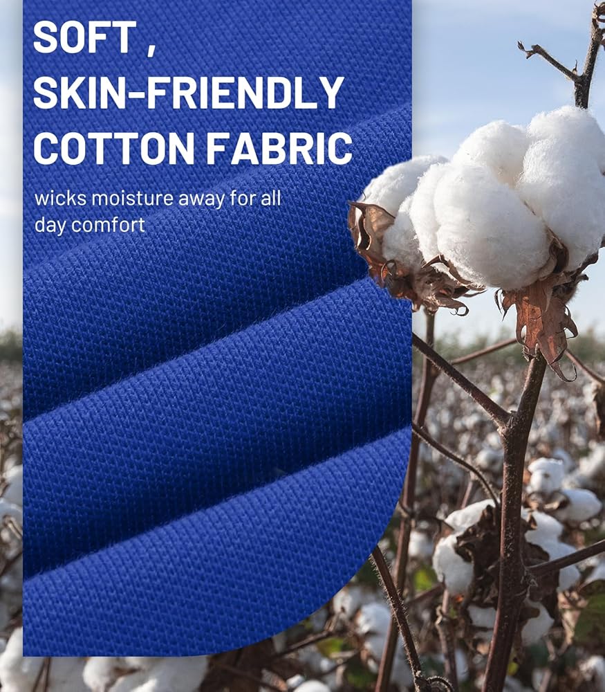 Easy-to-care-for Cotton Golf Shirt: Machine wash in cold water; The shirts resist color fading and maintain their vibrancy over time. Engineered to withstand multiple wash cycles, the durable fabric resists pilling and retains its quality