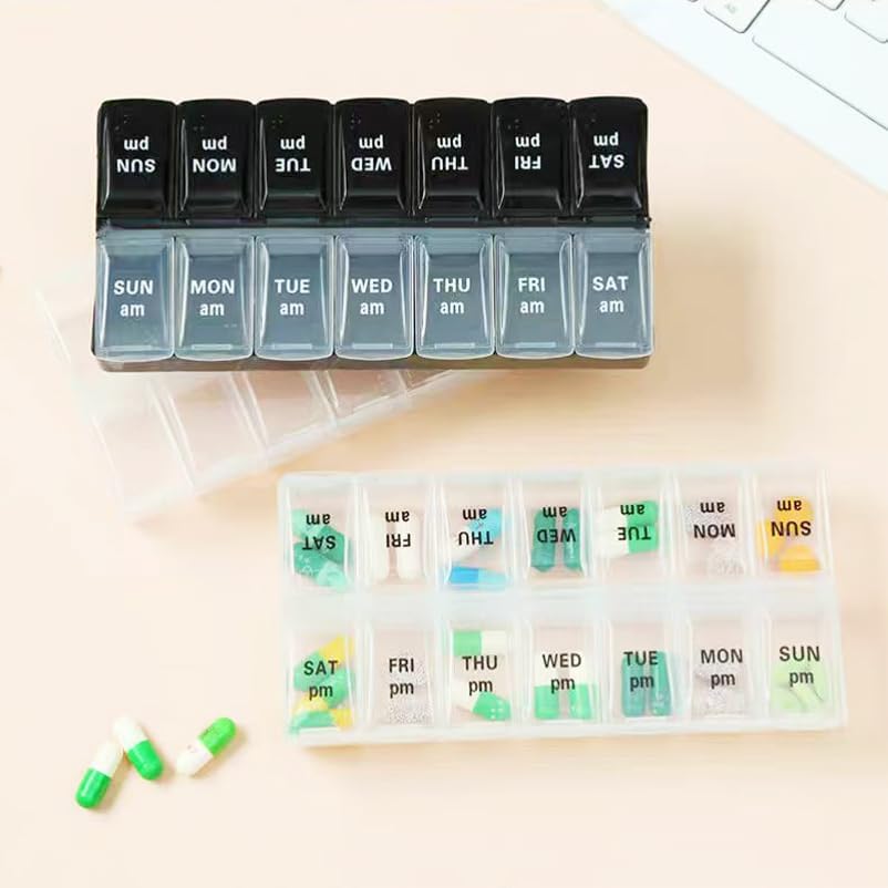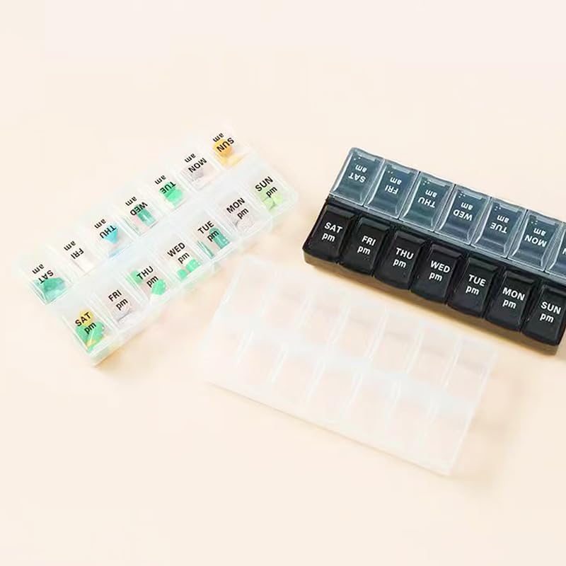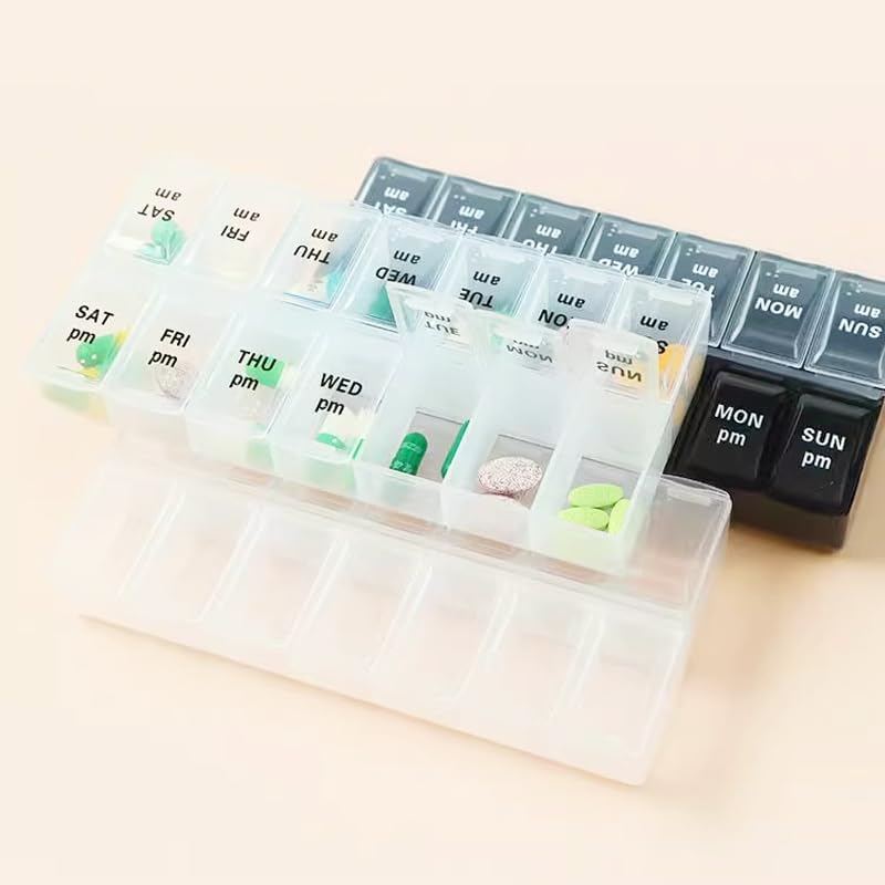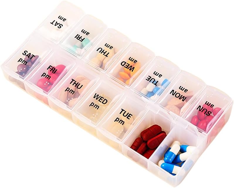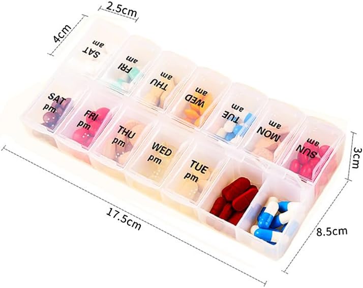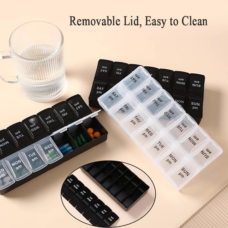-1x 14 compartments weekly travel pill case organizer (Transparent)