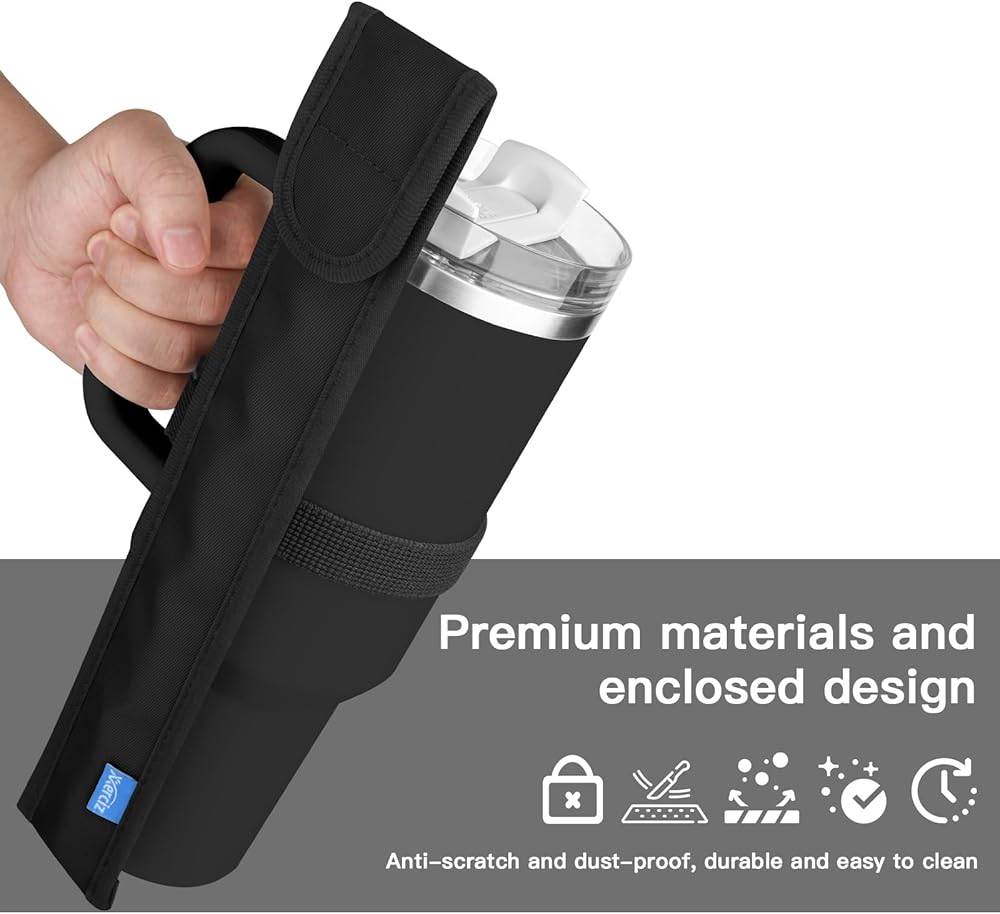 Simple and Practical: This straw pouch can be easily attached to the stanley cup, with one hook and loop straps, ensuring a secure fit that doesn't easily come off. When you want to use the straw, you can easily open the lid and take out the straw. They effectively keep dust, when not in use, maintaining the cleanliness and hygiene of your drinks and the straw.