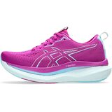 Keep your feet centered in comfort for a balanced stride wearing the ASICS Women's Glideride Max Road Running Shoes. The lace-up footwear features partially recycled upper with jacquard mesh construction that creates a softer feel against the foot while improving breathability. Textile lining and insole. GUIDESOLE technology helps create smooth toe-offs and advanced energy savings. FLYTEFOAM Propel cushioning increases impact absorption and responsiveness. Lace-up closure. Heel pull tabs for easy wear. Round toe silhouette. FF BLAST cushioning creates a softer feeling at footstrike and a more responsive rebound. Hybrid ASICSGRIP outsole provides better grip.
