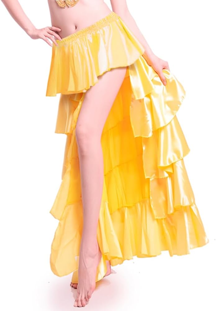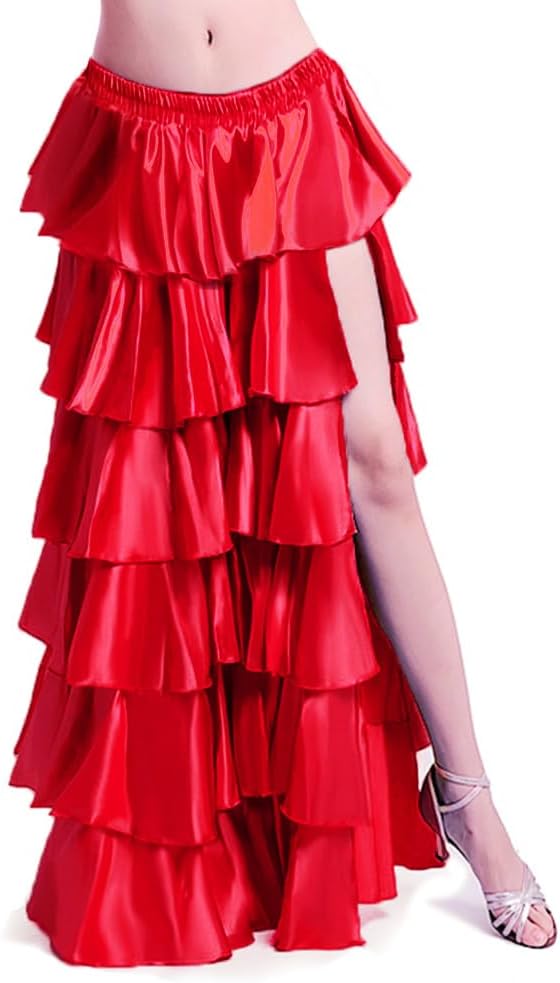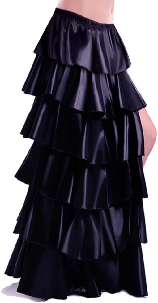 ROYAL SMEELA Women Maxi Satin Skirt Floor Length Layered Ruffle High Split Spectial Occasion Dance Skirts