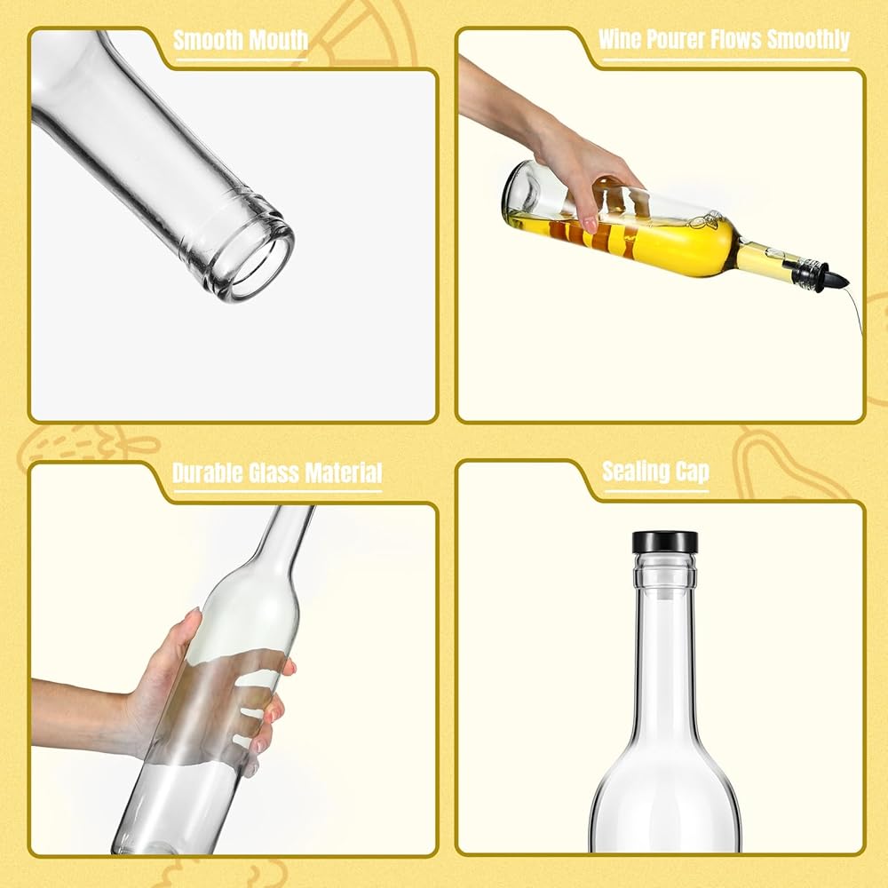 Our glass bottles for liquor are equipped with wine pourers and corks, you can pour wine without opening the lid, avoid spilling, easy to use. After use, you can use the cork to store the inside liquor for a long time.