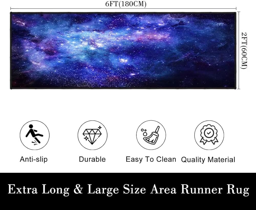 Galaxy Long Runner Rug for Hallway: Outer space decorative area rug size 23.6 x70.8 inch (60X180CM ). Blue kitchen mats for floor is lightweight and could be continually using for long time.This hallway runner rug 2x6 provides comfortable support to ensure that you are able to stand comfortably for the laundry room,office,bath room,bedroom,living room,kitchen sink.
