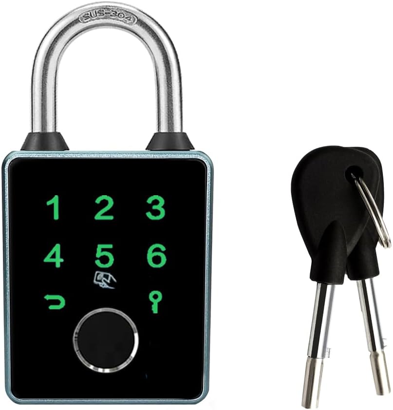 【Strong design, portable, and versatile】The smart padlock is compact and portable. ,It is Gym lock.,The smart padlocks are suitable for indoor and outdoor gyms, schools, offices, doors, gates, fences, garages, warehouses, cabinets, sheds, suitcases, handbags, suitcases, bicycles, etc.The fingerprint padlock measures 1.97x 1.02 x 4.21 inches and weighs 0.35 pounds.