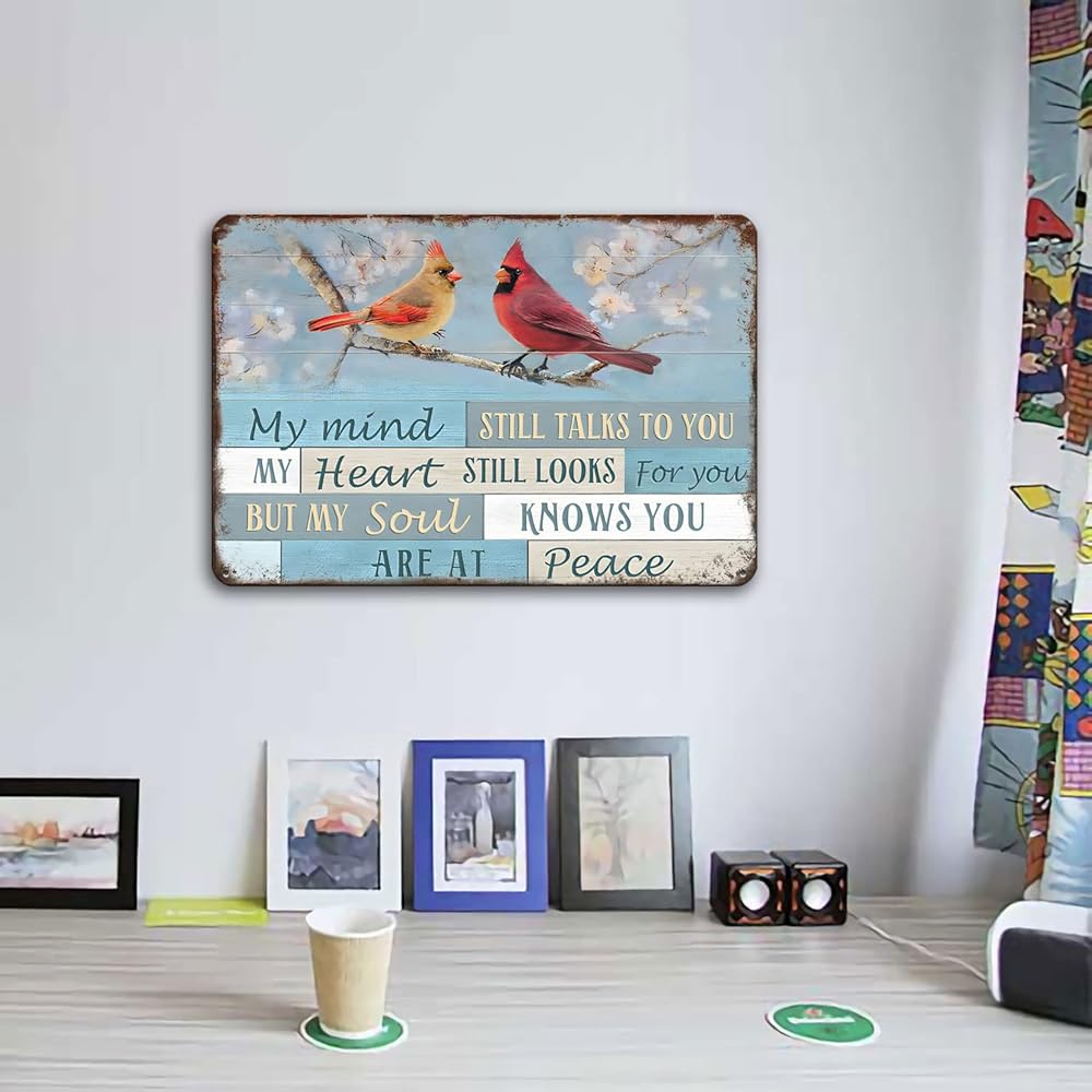 Aenaon Cardinal Bird My Mind Still Talks to You Vintage Metal Tin Signs Wall Decor Restaurant Bar Cafe Club Kitchen Decor Tin 12x8 Inch