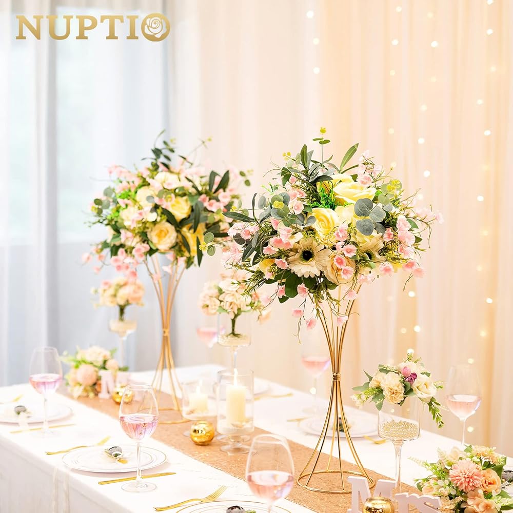NUPTIO 2 Pcs Wedding Centerpieces for Tables, 19.7in Tall Metal Flower Trumpet Vase, Gold Vases for Centerpieces, Artificial Flower Display Rack for Birthday Party Dinner Event Hotel Home Decor
