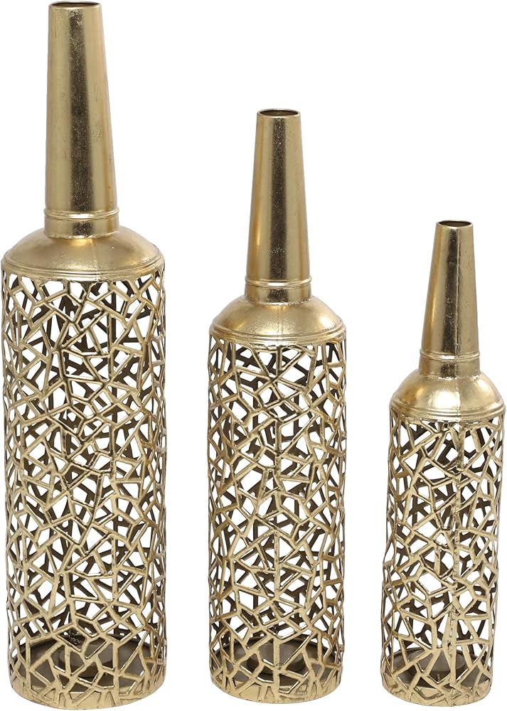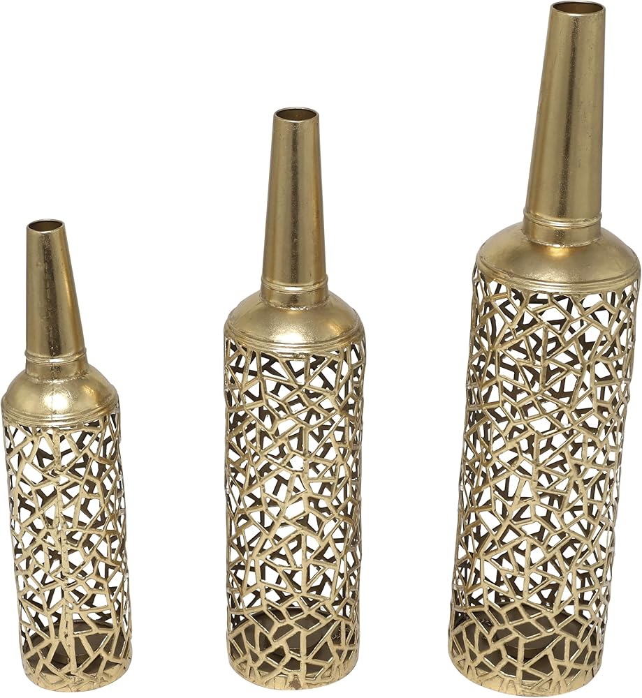 The Novogratz Metal Decorative Vase Abstract Patterned Centerpiece Vases with Open Frame Design, Set of 3 Vases for Home Decoration 30, 25, 21" H, Gold