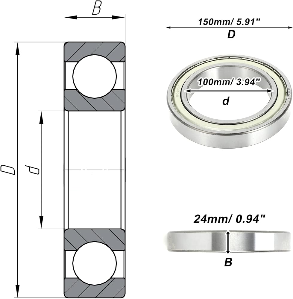 • Specification:Outer Diameter: 120mm/ 4.72", Inner Diameter: 95mm/ 3.74", Width: 13mm/ 0.51", Type: 6819ZZ, Precision Level: P0, Basic Load Ratings (kN): Cr:19.3 C0r:22, Limiting Speeds(min-1): Grease:5000