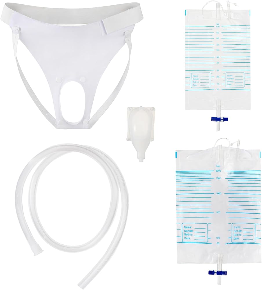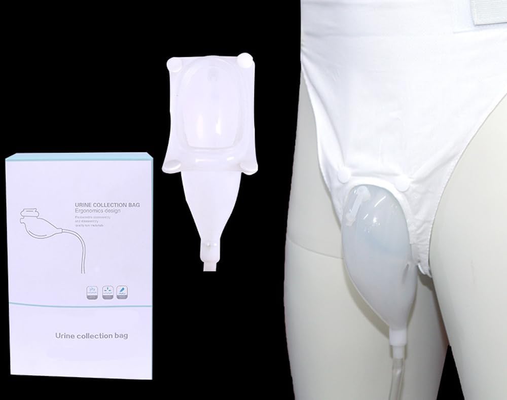 Wearable urine bag makes it very easy and comfortable to use, wear it like wearing underwear, so, you can move and walk around and don't worry the pee.
