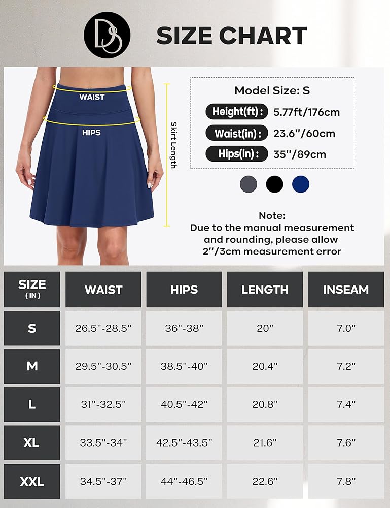 [Chic Design]: Desol knee length women's skorts feature flowy pleated hem which makes it easier to engage in any sports activity while creating a visually layered look. Desol long skorts for women with pockets also are easy to pair with a variety of tops, including T-shirts, sports bras, polo shirts, sweatshirts, and sweaters