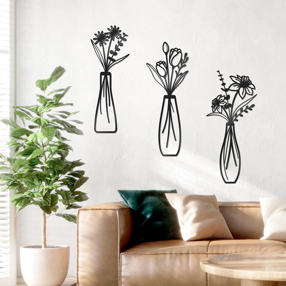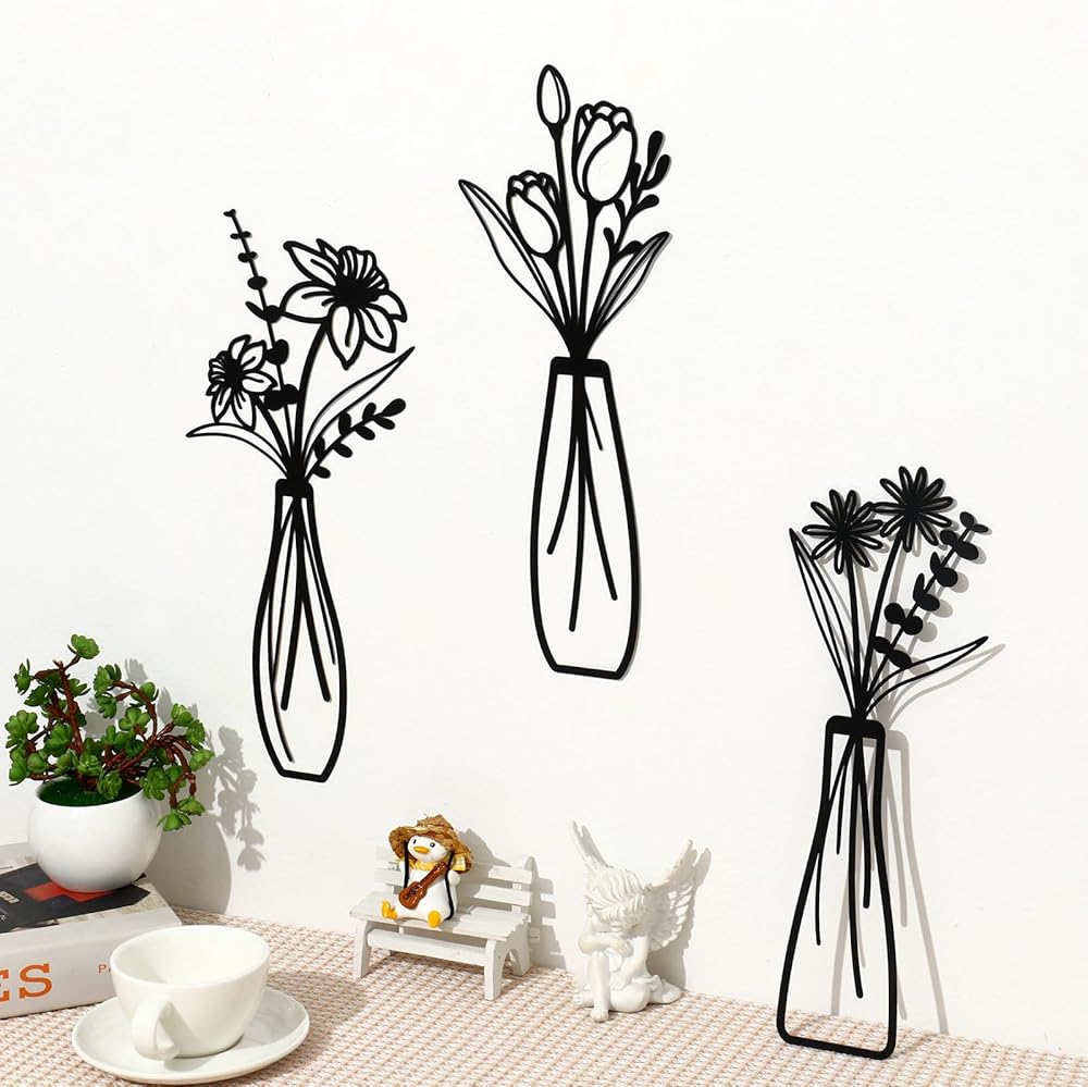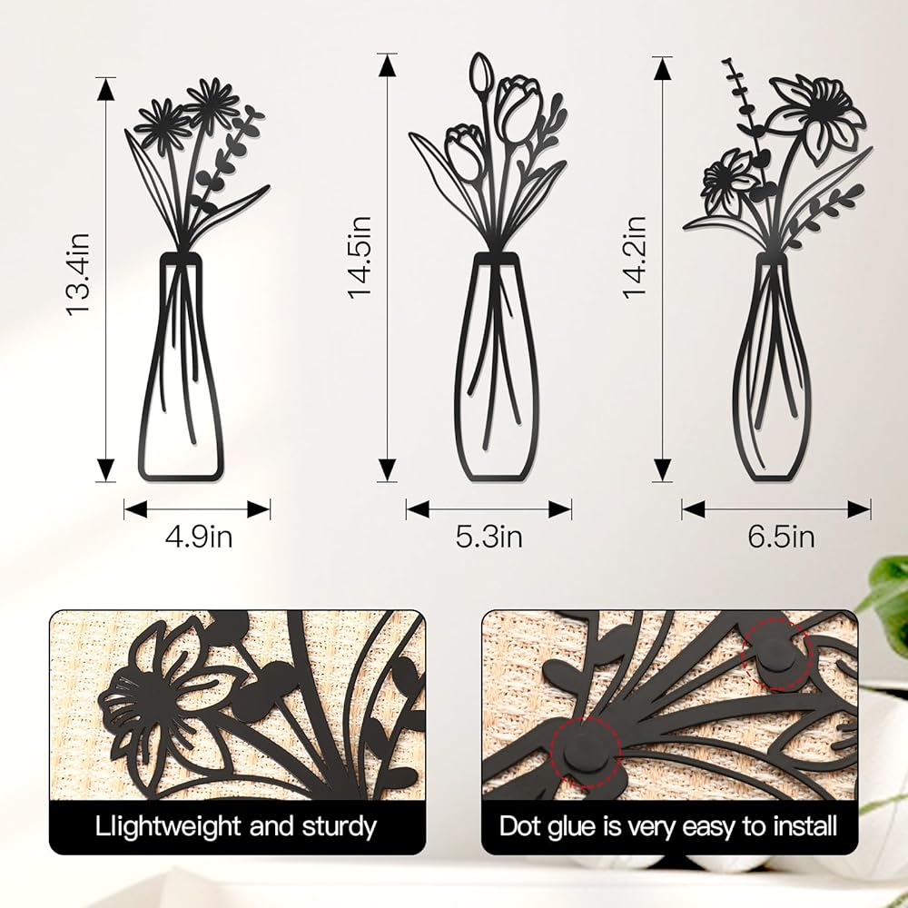 You will receive: The package includes 3 pieces of black metal wall decors in different styles, elegant and exquisite, and the enough quantity can meet your home and office wall decor needs, adding a vivid nature atmosphere.