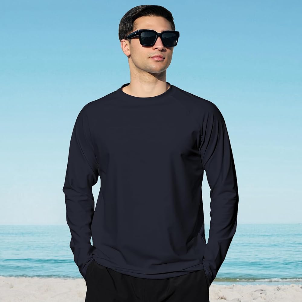 Highly Effective Sun Protection: the UPF50+ men rash guard shirts can effectively block 98% of UV rays and protect the skin from damage; the long sleeves can provide additional sun protection