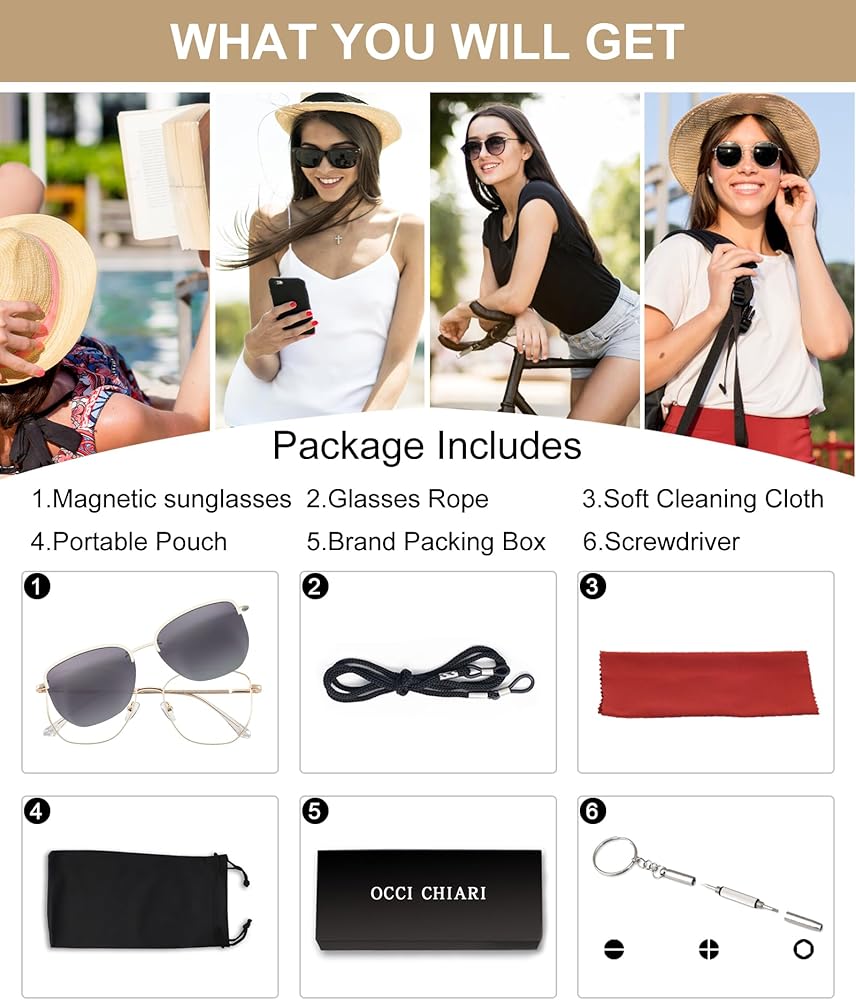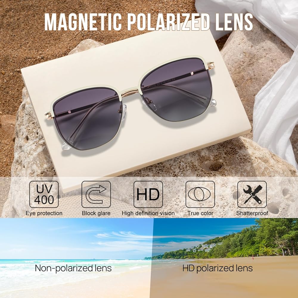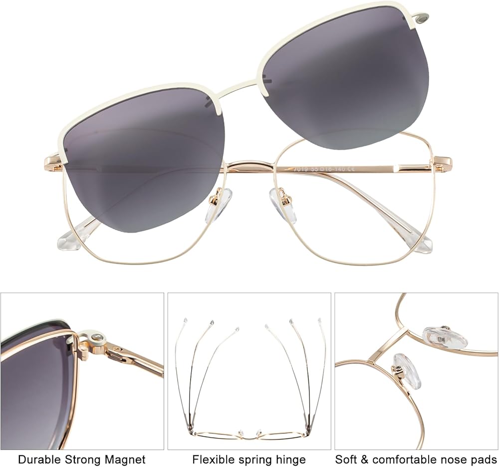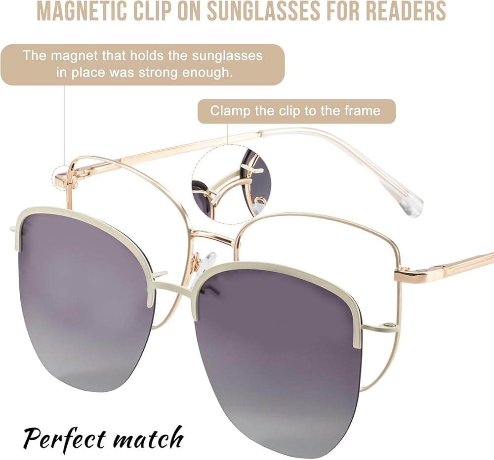 2 IN 1 design : Magnetic clip on sunglasses with readers, more convenient and lightweight, Easy to carry. you can take off the magnetic Sunglasses part and turn it into readers, and you can always put sunglasses on when you need it.