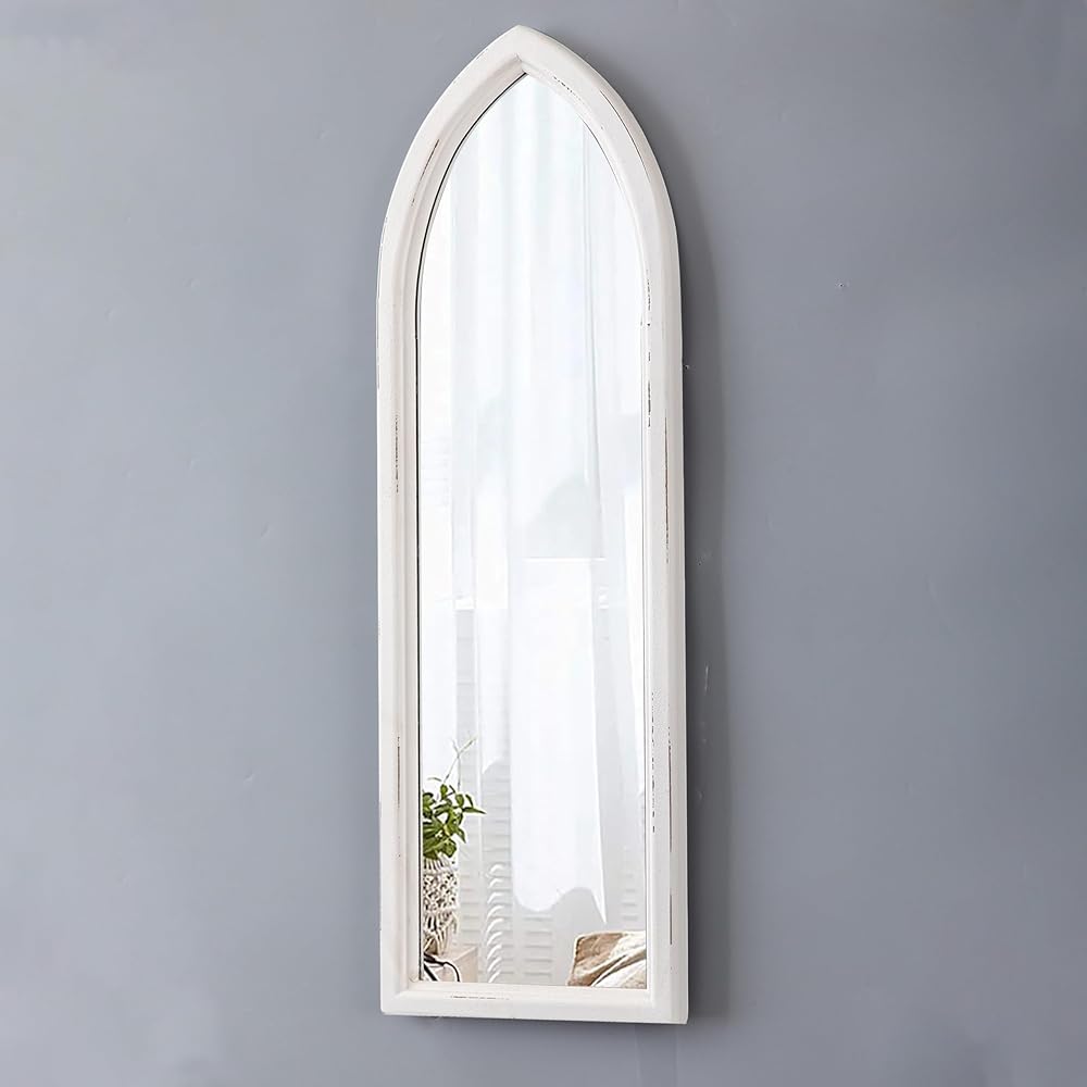 Rustic Arched Long Mirrors for Wall 35 X 12 Inch, Hanging Wood Frame Distressed White Cathedral Wall Mirrors Decorative Living Room Bedroom, Farmhouse Entryway Mirror