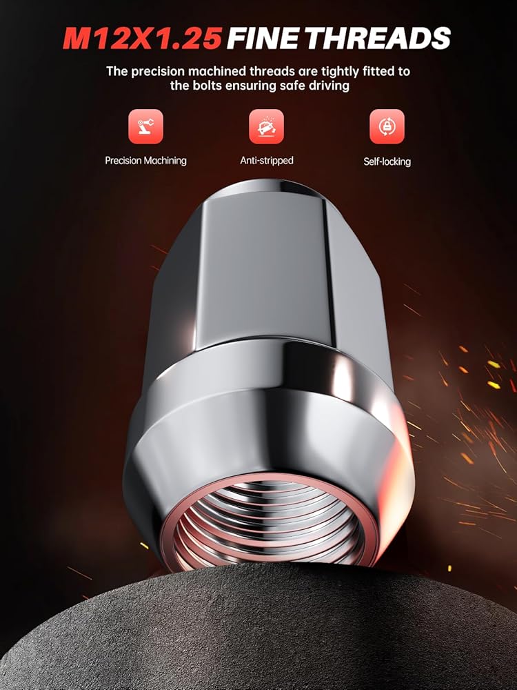 [PRECISION DESIGN]: Our lug nuts adopts an one-piece structure and closed-end design, which can effectively prevent cracking. Strict manufacturing standards and factory testing ensure its tightness and quality