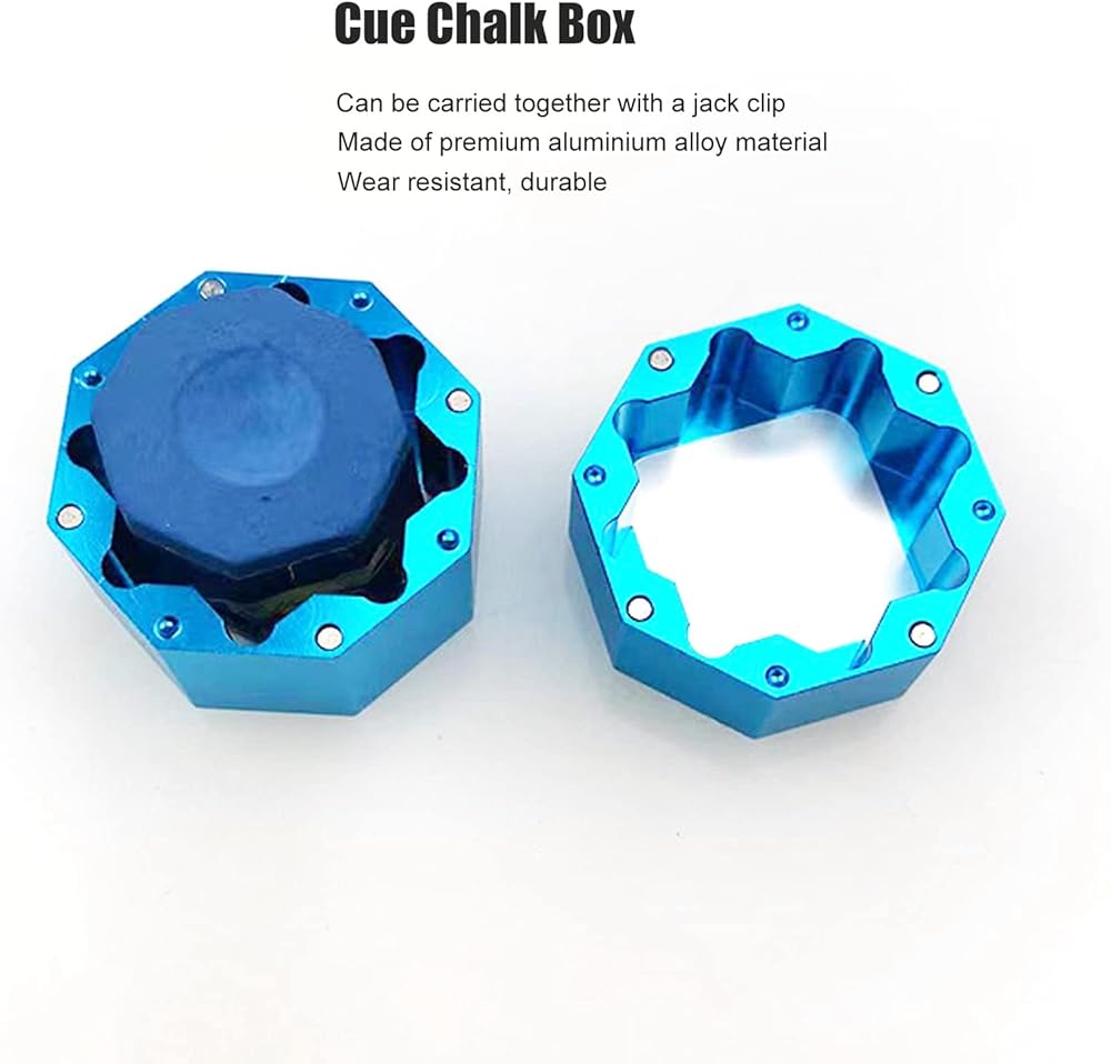 ALUMINIUM ALLOY: Octagonal Billiard Chalk Case is made of aluminum alloy material, solid quality, waterproof and wear-resistant, not easy to damage, easy to open and close, long service life, is an ideal billiards accessory.