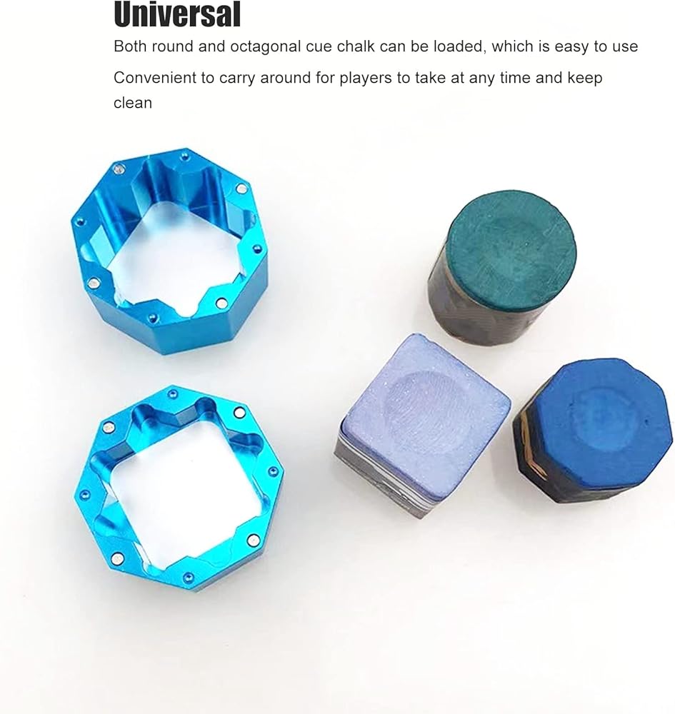 UNIVERSAL: Aluminium Alloy Cue Chalk Box is universal and can hold round and octagonal cues. It is professionally manufactured, easy to use and has a wide range of applications. It is a very practical billiard accessory with high reliability.