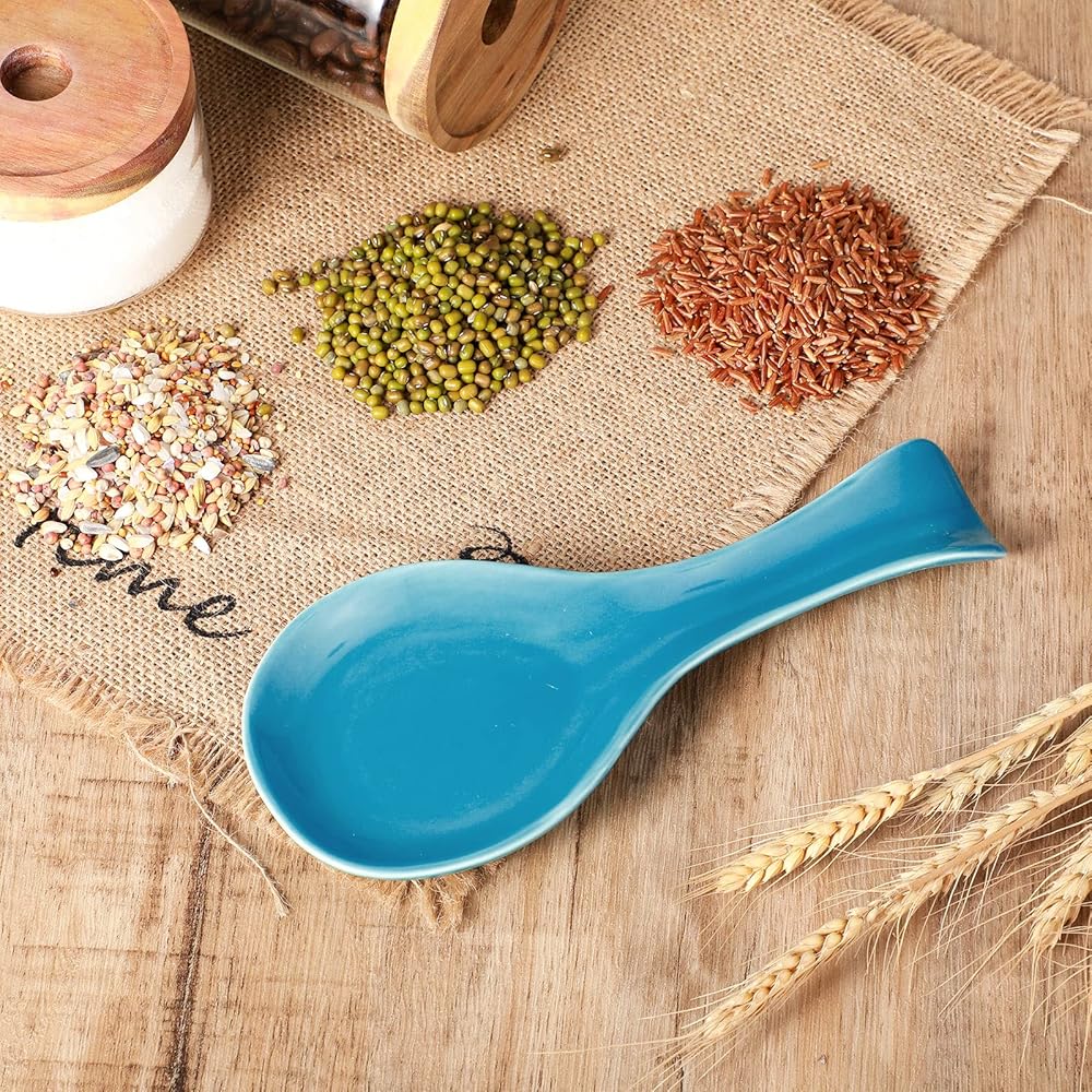 • Package includes: the package comes with 1 piece ceramic spoon rest which is nice for resting large and small spoons, teaspoon, silverware, soup ladles, spatulas, and other kitchen cooking utensils to keep your counters clean and